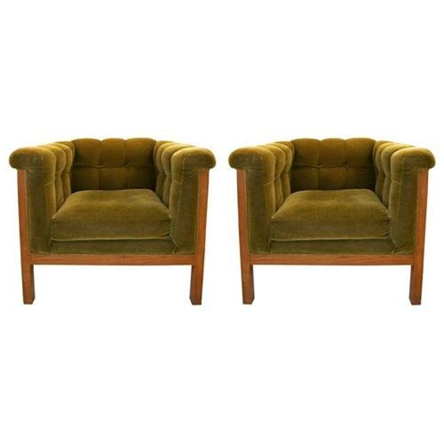 Pair of Edward Wormley style cube lounge chairs in mohair. Very comfortable!!