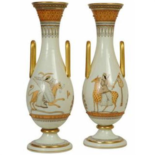<tr><td>Title:Pair Egyptian Motif Opaline Glass Vases</td></tr>