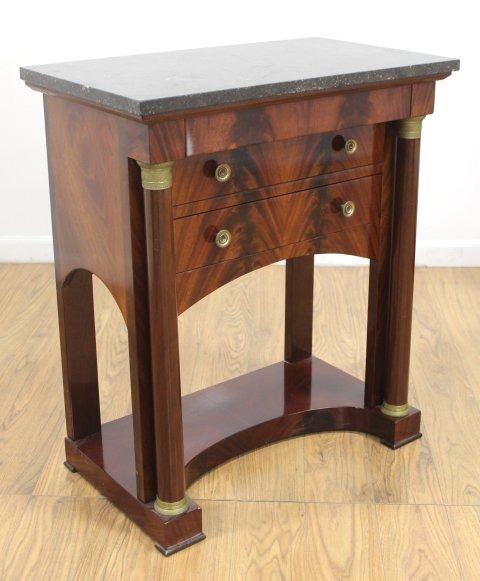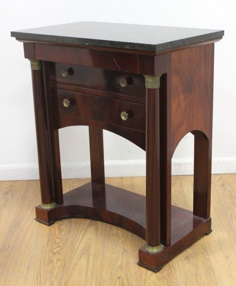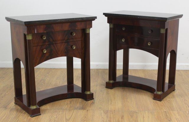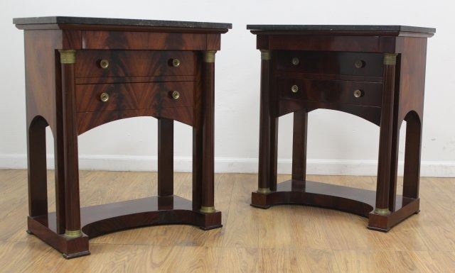 Bronze mounted. With fossilized black marble tops. Approx. 30" H x 26" W x 15" D.
