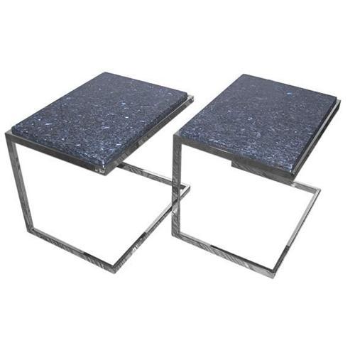 Pair of chrome and marble end tables. Blue/black/silver metalic like marble.