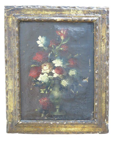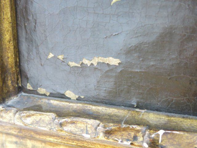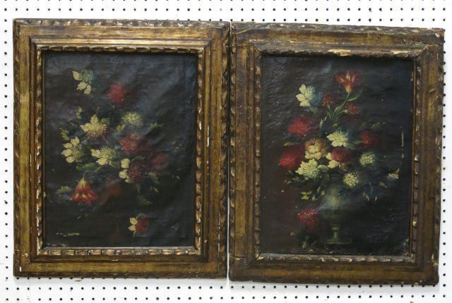 18th-19th century. Approx 18" H x 14" W unframed, 24" H x 20" W framed. Damages to paintings and frames.