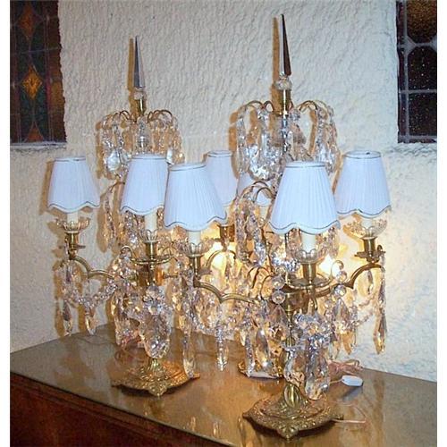 <tr><td>Title:Pair French Girandoles Table lamps 4L</td></tr>