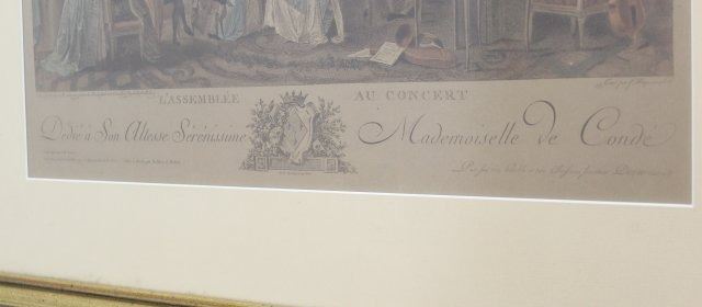 Depicting royal scenes. Titled "L'Assemble au Concert" and "L'Assemble au Salon." (6005)