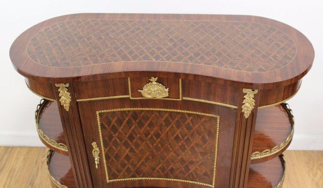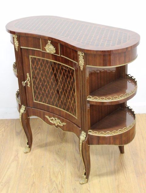 Contemporary. 4 shelves. Bronze mounted. Approx. 29 1/2" H x 31 1/4" W x 13 3/4" D.