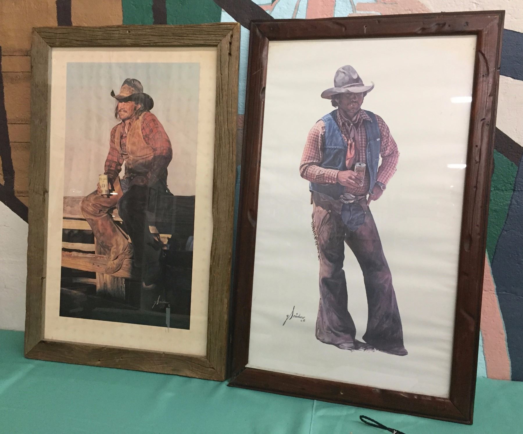 Maker: Gordon Snidow. Approx. Age: Circa 1980s. Size: Both measure approx. 21” w x 33” h. Additional Info: A pair of framed, Gordon Snidow, Coors Cowboy prints. Condition: Both show signs of age and use, they hung in a local tavern for many years. Please look closely at the pictures - they are an important part of our description. Shipping: There will be a $15 handling / packaging fee for shipping this lot. The actual cost of postage will be added on top of that.