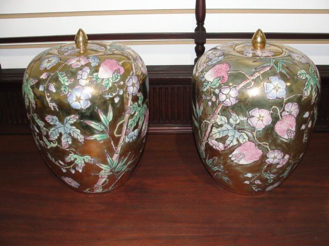 Pair Handpainted Ginger Pots
