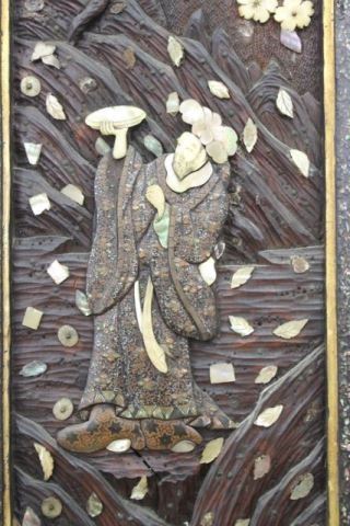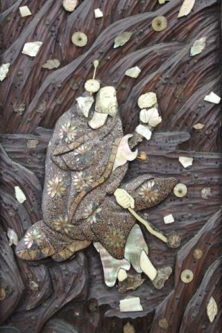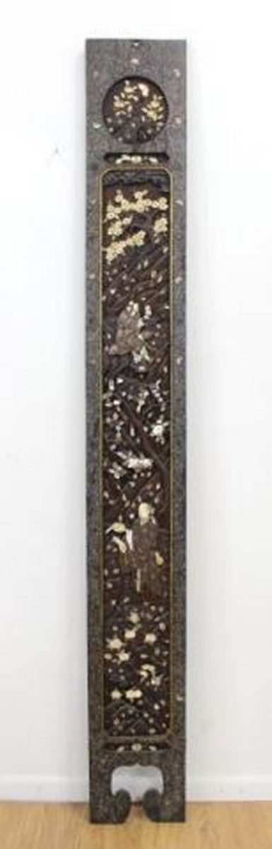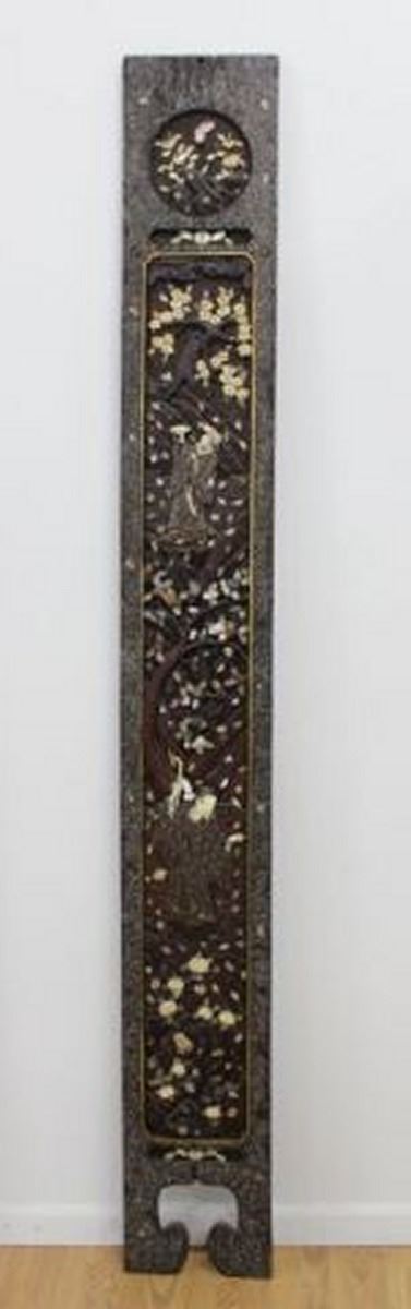 Decorated with mother of pearl and bone. Approx. 91" H x 11" W. (5281) Some losses.