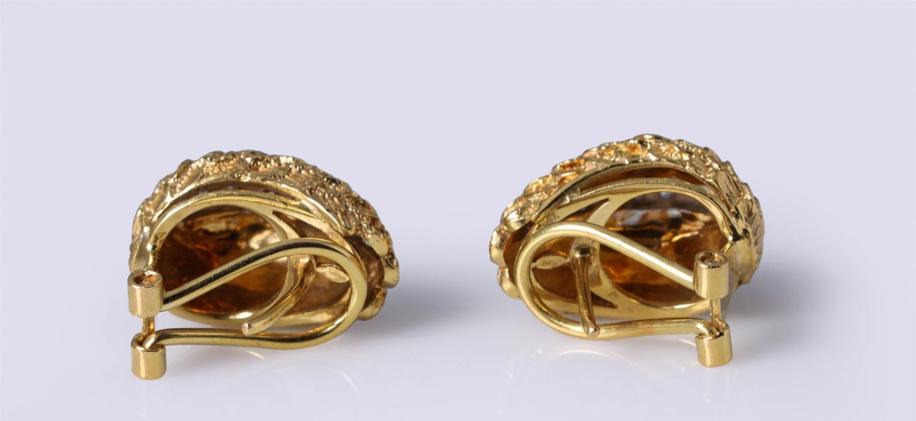 Pair Italian 18K Gold & Diamond Earrings containing twelve round brilliant cut diamonds weighing approximately 0.08 cts. Total weight of 11.6 gm. Estimated retail value $2,800.