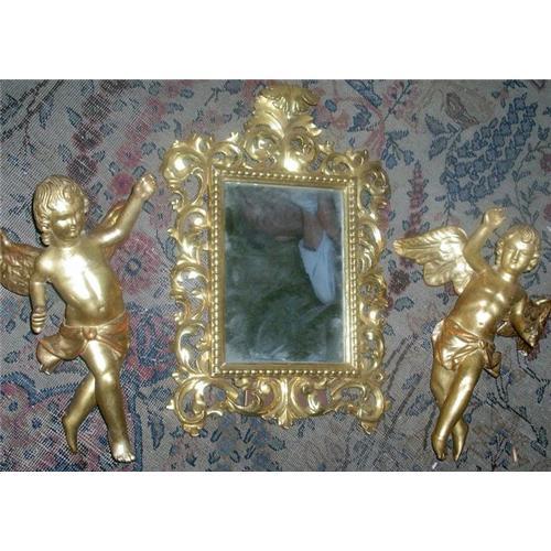 <tr><td>Title:Pair Italian wood carved Putti gilt and mirror</td></tr>