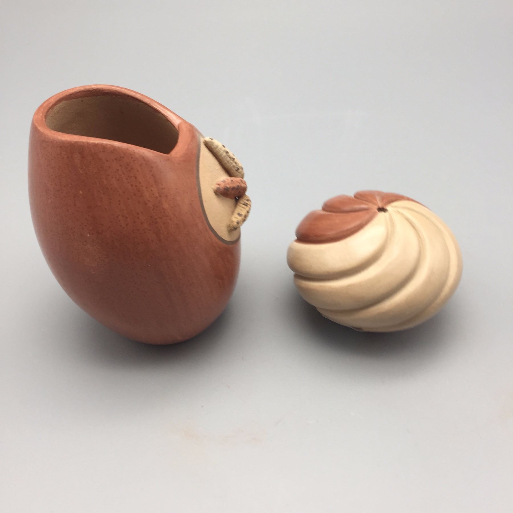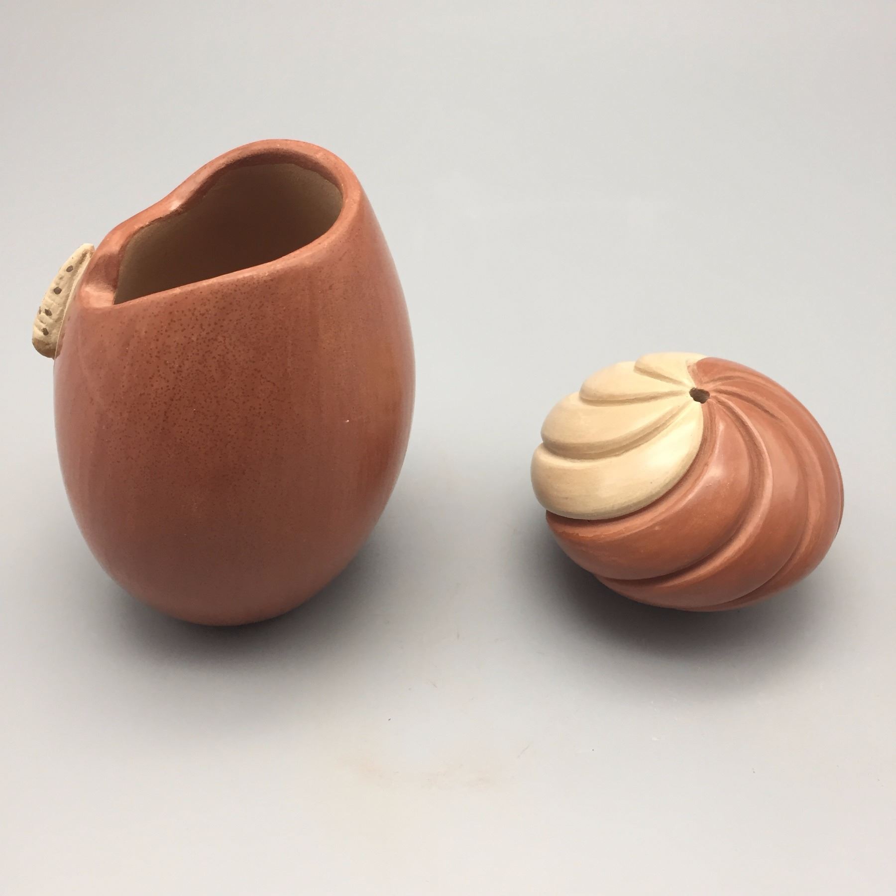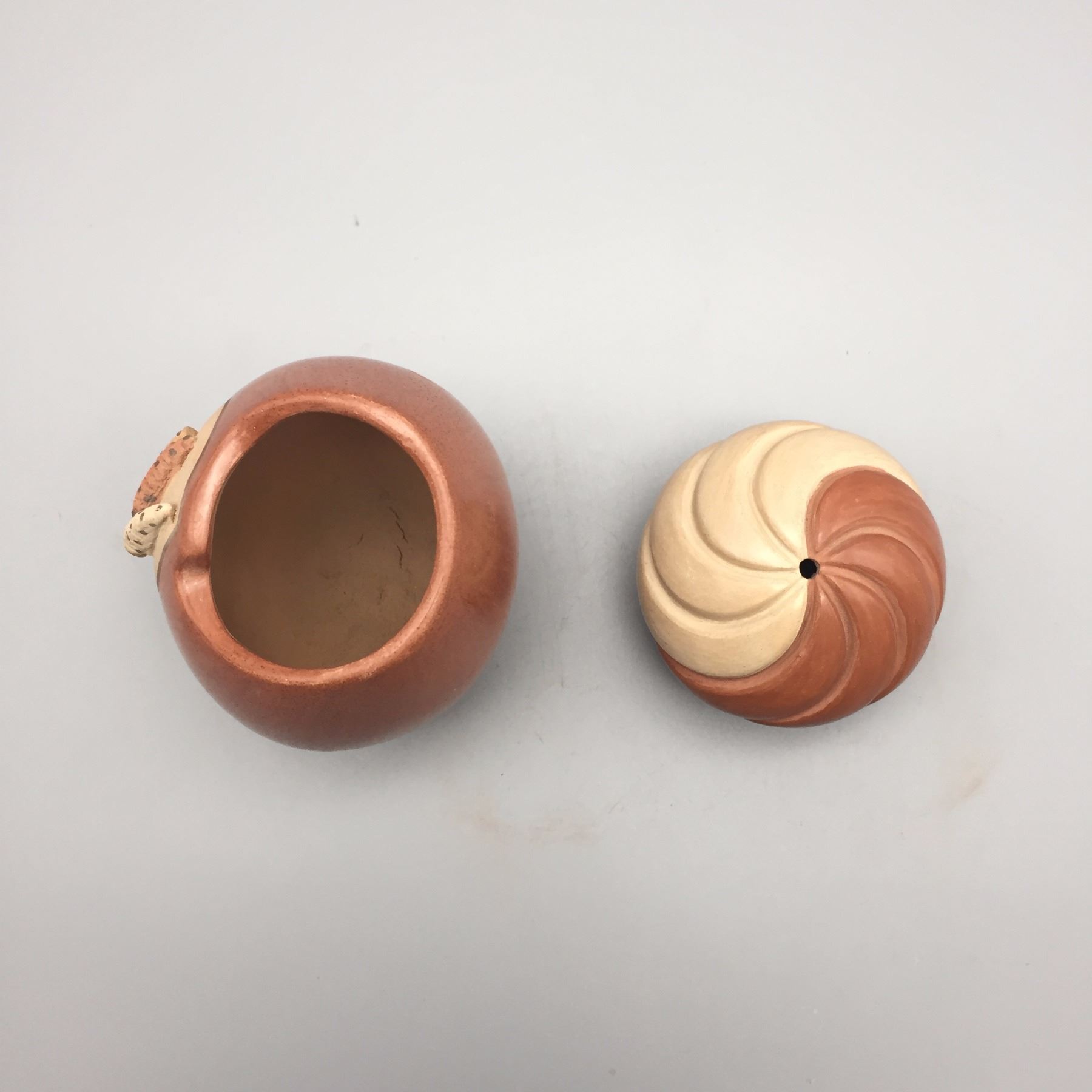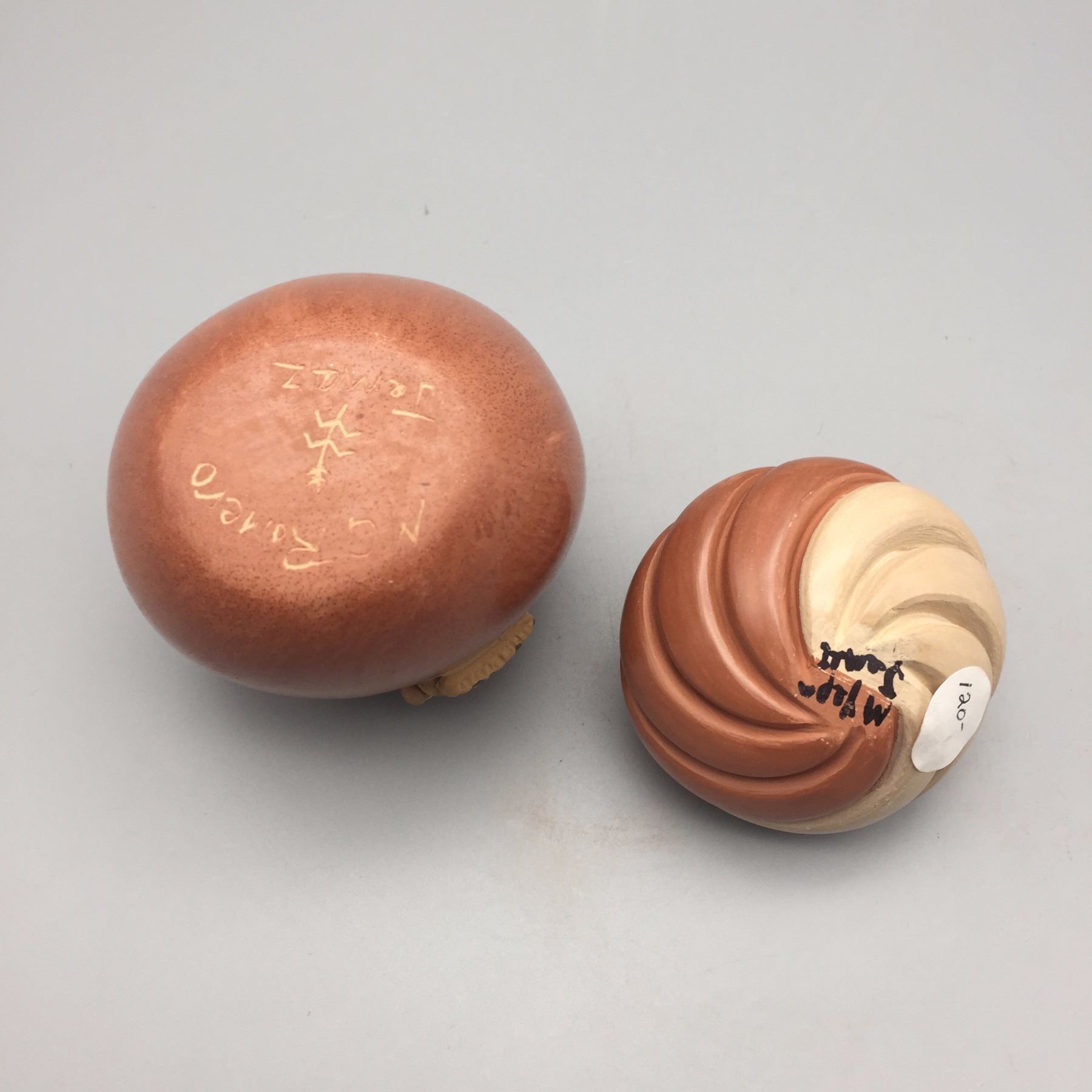 Maker: M.G. Romero and M. Yepa. Approx. Age: Approx. Age: Fairly modern, NOS. Size: 1) 2 3/4” w x 3 1/2” h. 2) 2 1/2” w x 2” h. Additional Info: Pair of Jemez (corn seed and swirl) pots, Condition: Good, New, old stock (NOS) from dealer who is retiring. Please look closely at the pictures - they are an important part of our description. Shipping: There will be a $8 handling / packaging fee for shipping this lot. The actual cost of postage will be added on top of that.