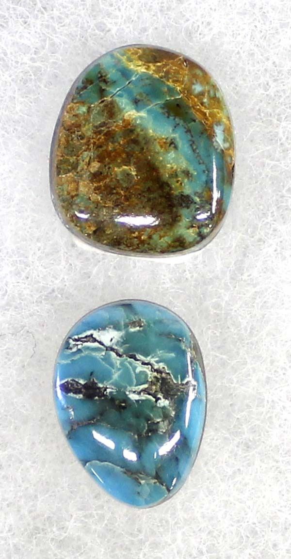 Pair Kingman Turquoise Cabochons, largest 1'', 30.85 total carat wt.