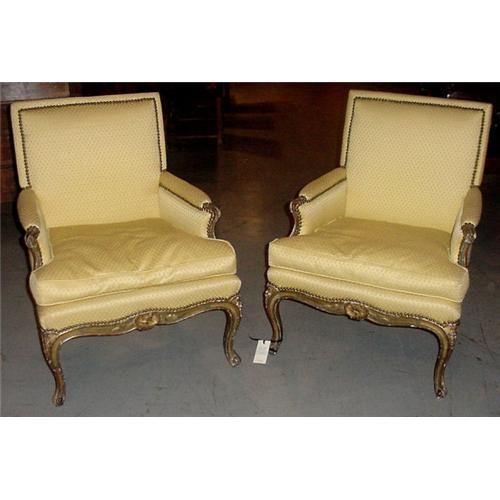 <table width="100%" border="0" cellspacing="0" cellpadding="4"><tr><td><em> </em></td></tr><tr> <td width="100%"> Pair Louis XV Style Painted and Parcel Gilt Yellow walnut Bergeres c. 1875 </td></tr><tr> <td> </td></tr><tr> <td>Reference #: FU440_1</td></tr><tr><td>Condition:excellent</td></tr><tr><td>Year:c. 1875</td></tr><tr><td>Height:35</td></tr><tr><td>Depth:27</td></tr><tr><td>Width:22</td></tr><tr><td>Title:Pair Louis XV Style Painted and Parcel Gilt</td></tr><tr><td>Location:Atlanta, GA</td></tr></table>