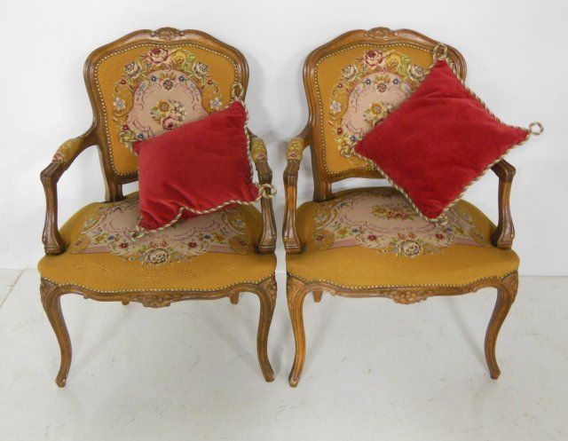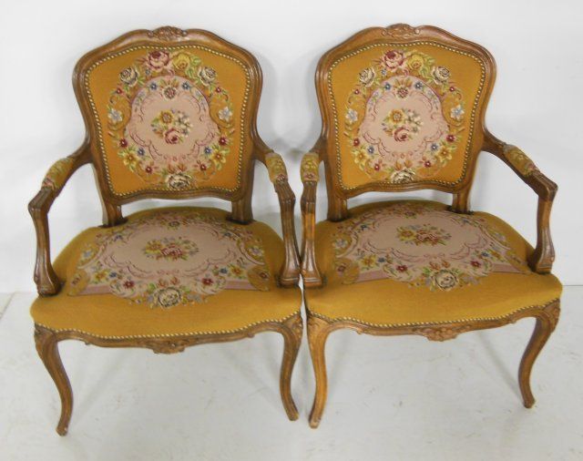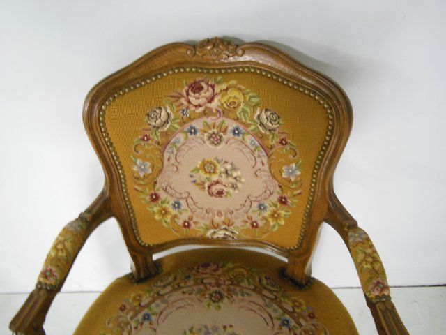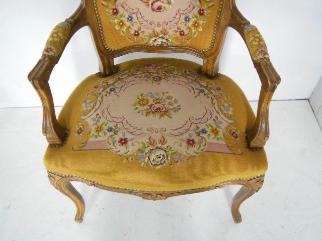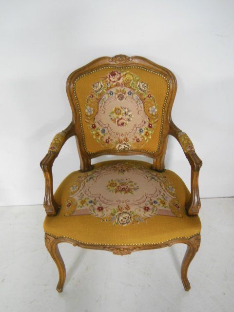 Needlepoint & pettipoint upholstery. Approx. 31" H x 24" W x 21" D.
