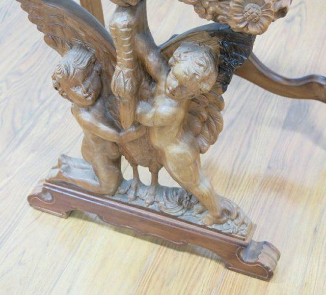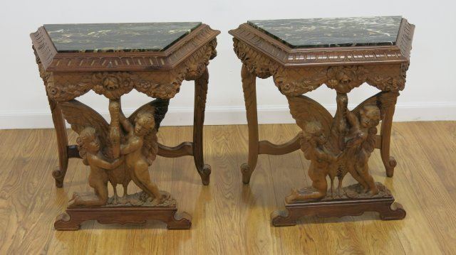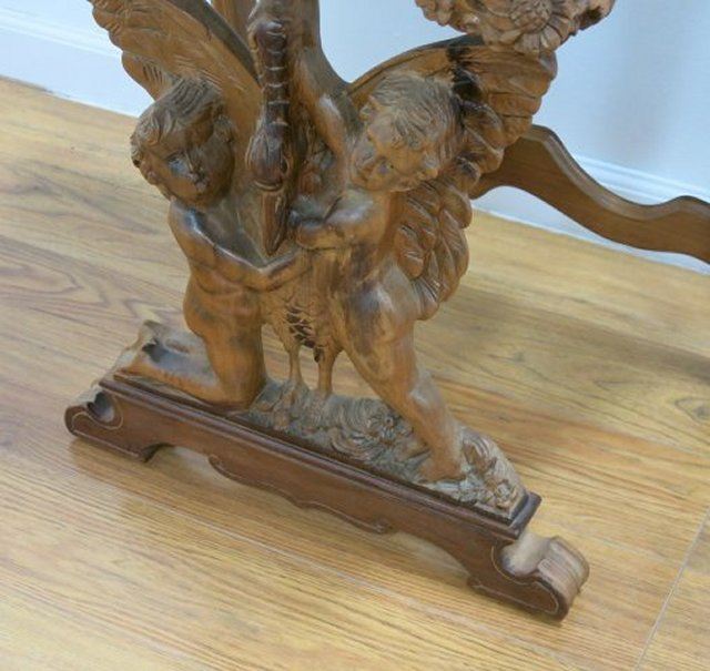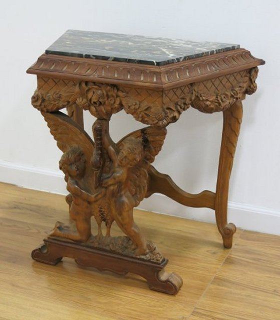 Black marble. Circa 1920's or 1930's. With carved cherubs. Approx. 24 1/2" H x 15 1/4" D x 26" W.