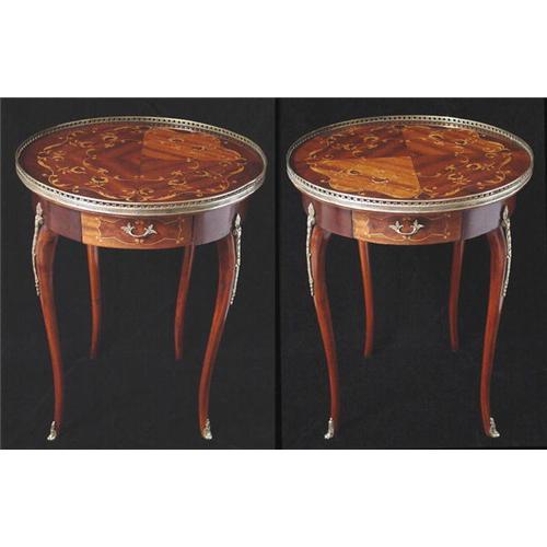 <tr><td>Title: Pair Marquetry and Bronze Side Tables</td></tr>