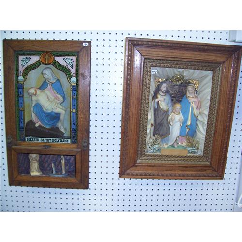 Pair Oak Framed Religious Statues 13 x 23 and 16 x 21