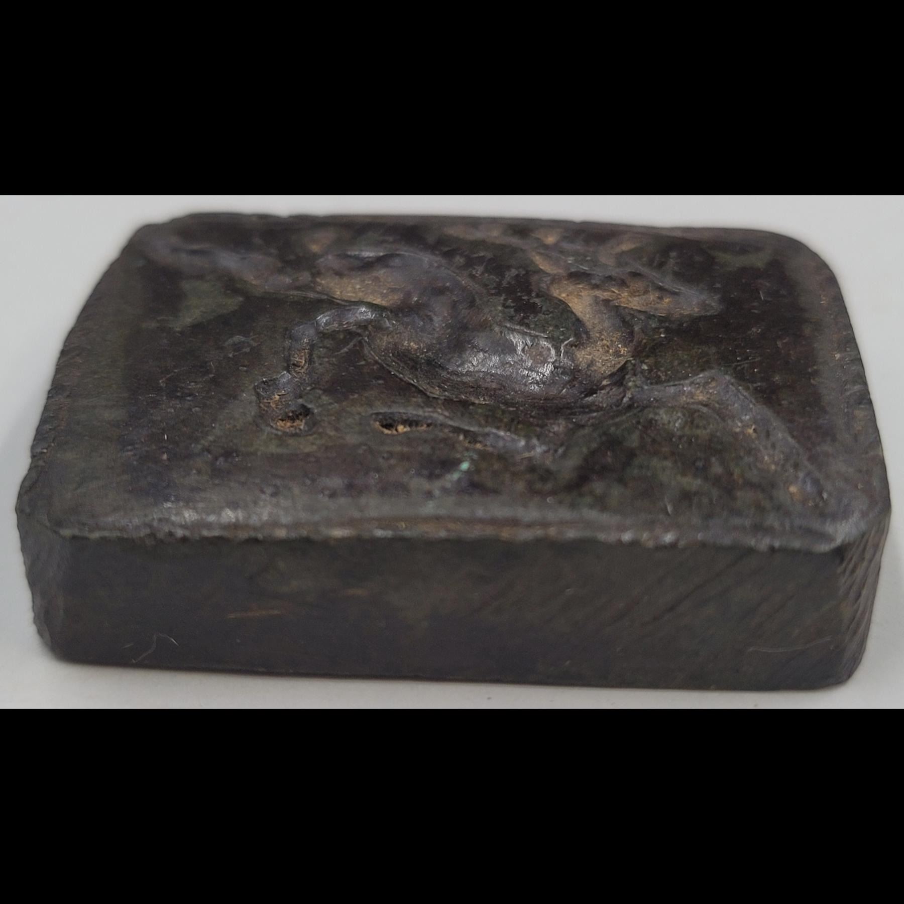 Pair Of Small Solid Metal Relieve Sculpture And Reindeer Intaglio Carving. Measure approx 2.5" X 1.5" X .75" and 1.75" X 1.25" X .38"