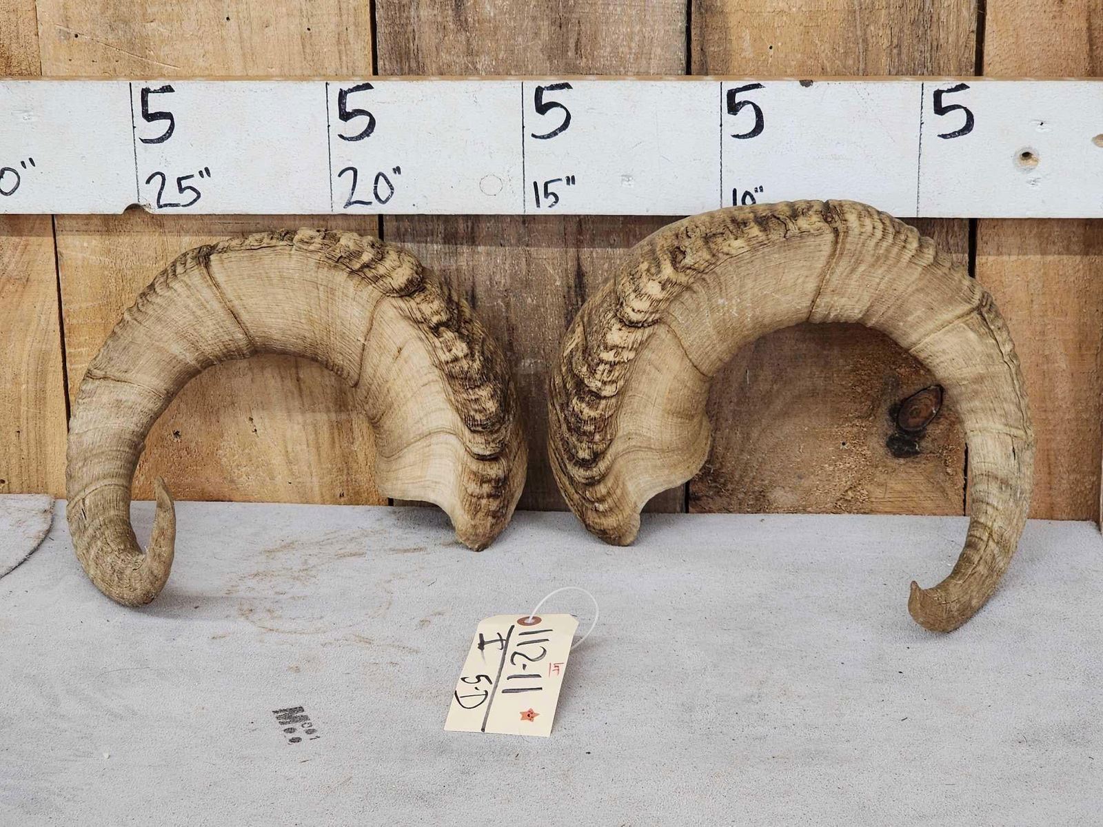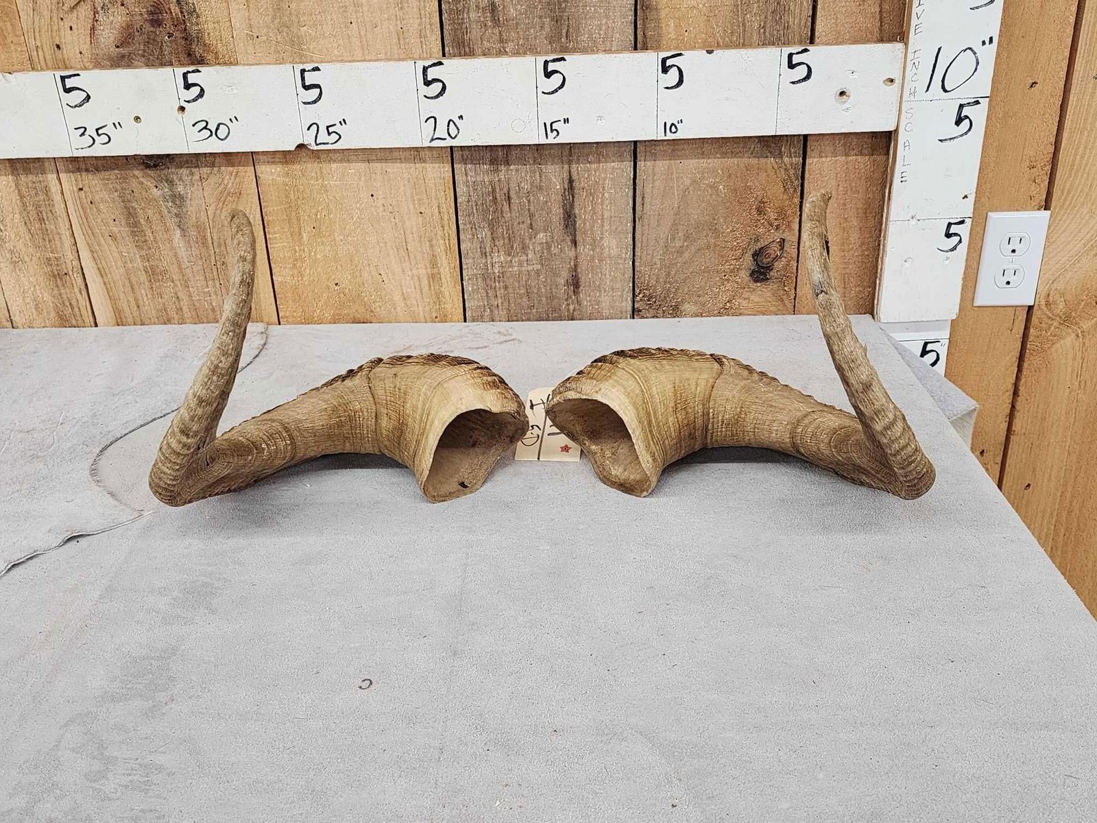 112.11 Awesome color great for carving , crafts, or decor Right horn length about 32 7/8" 13" base Left 32 4/8" with a 12 7/8" base