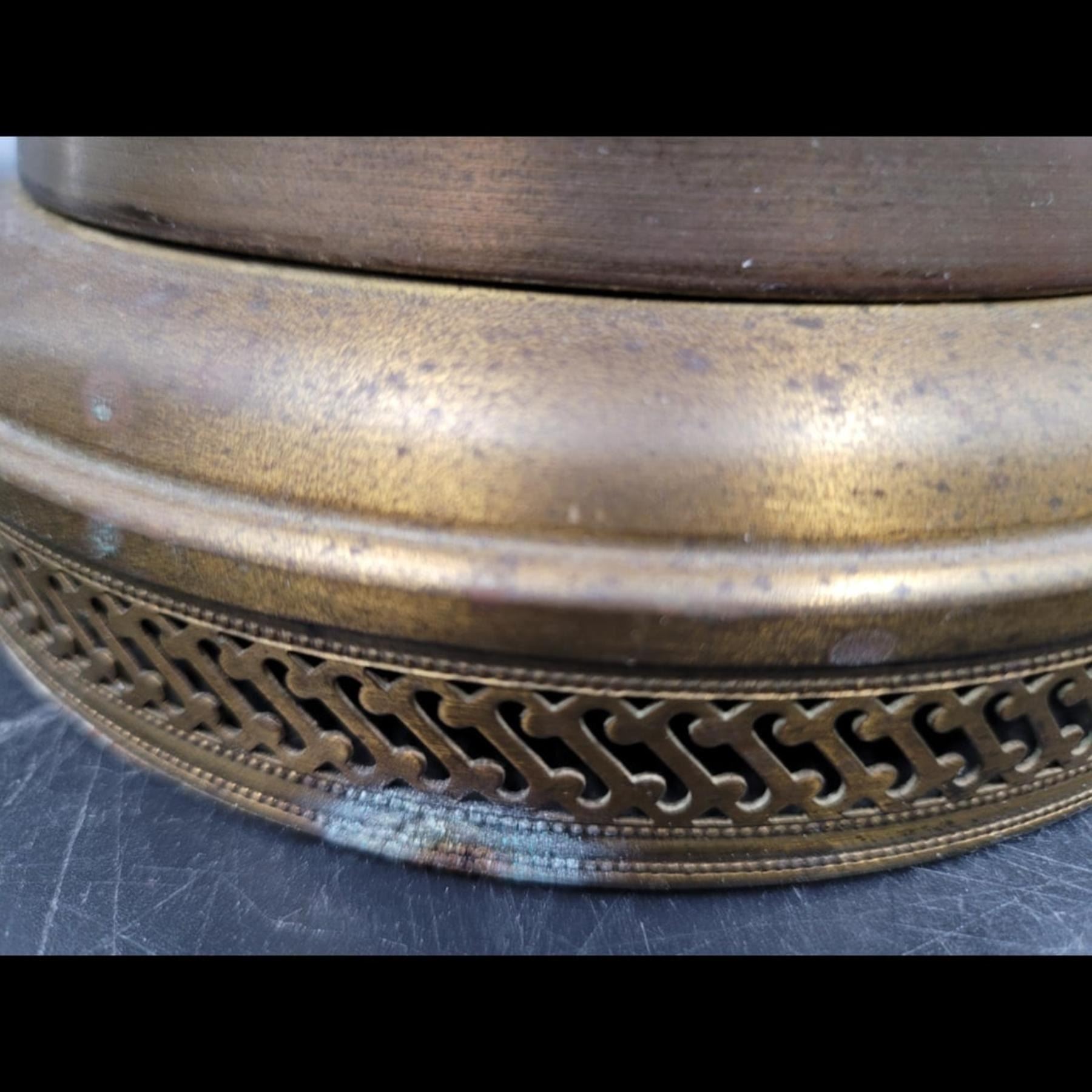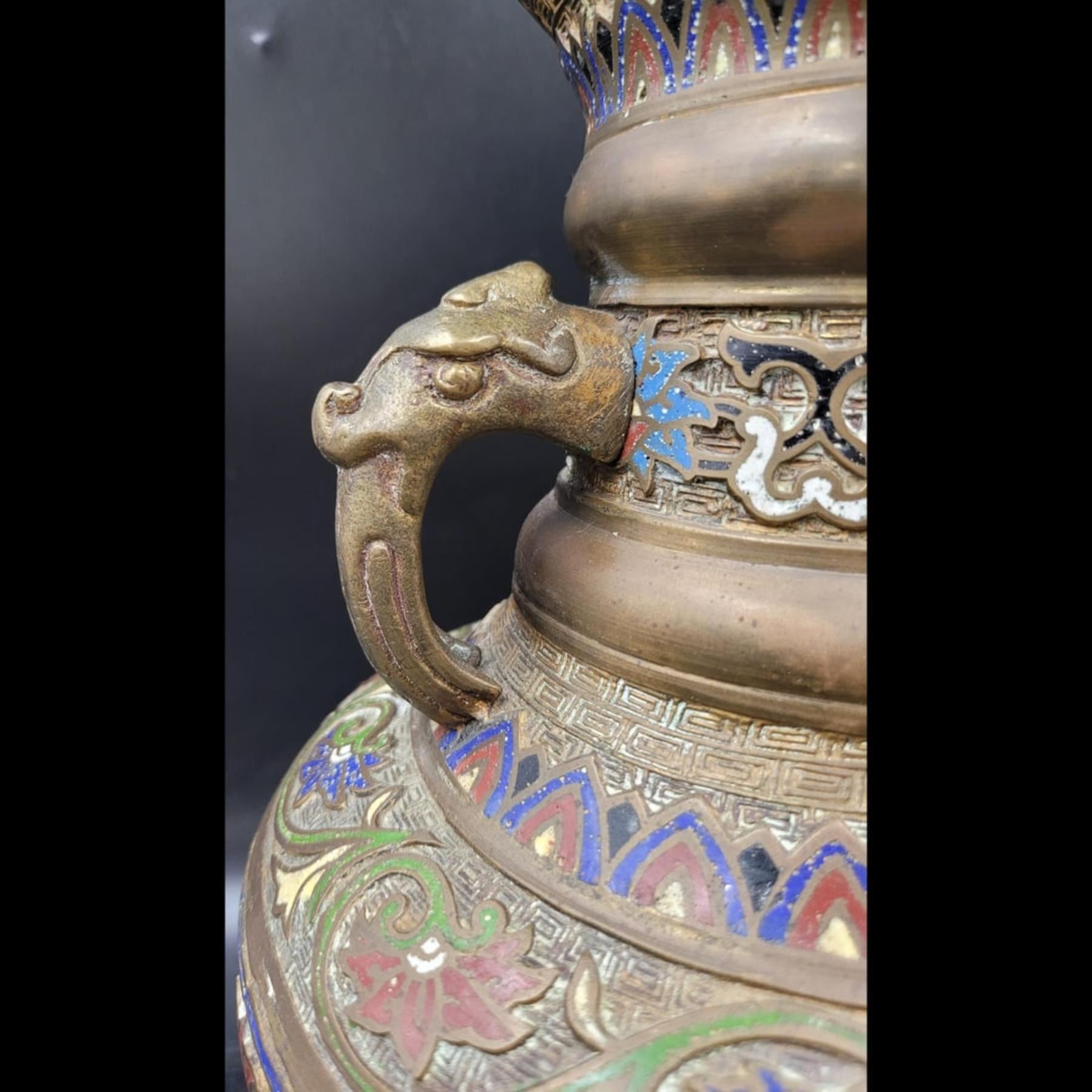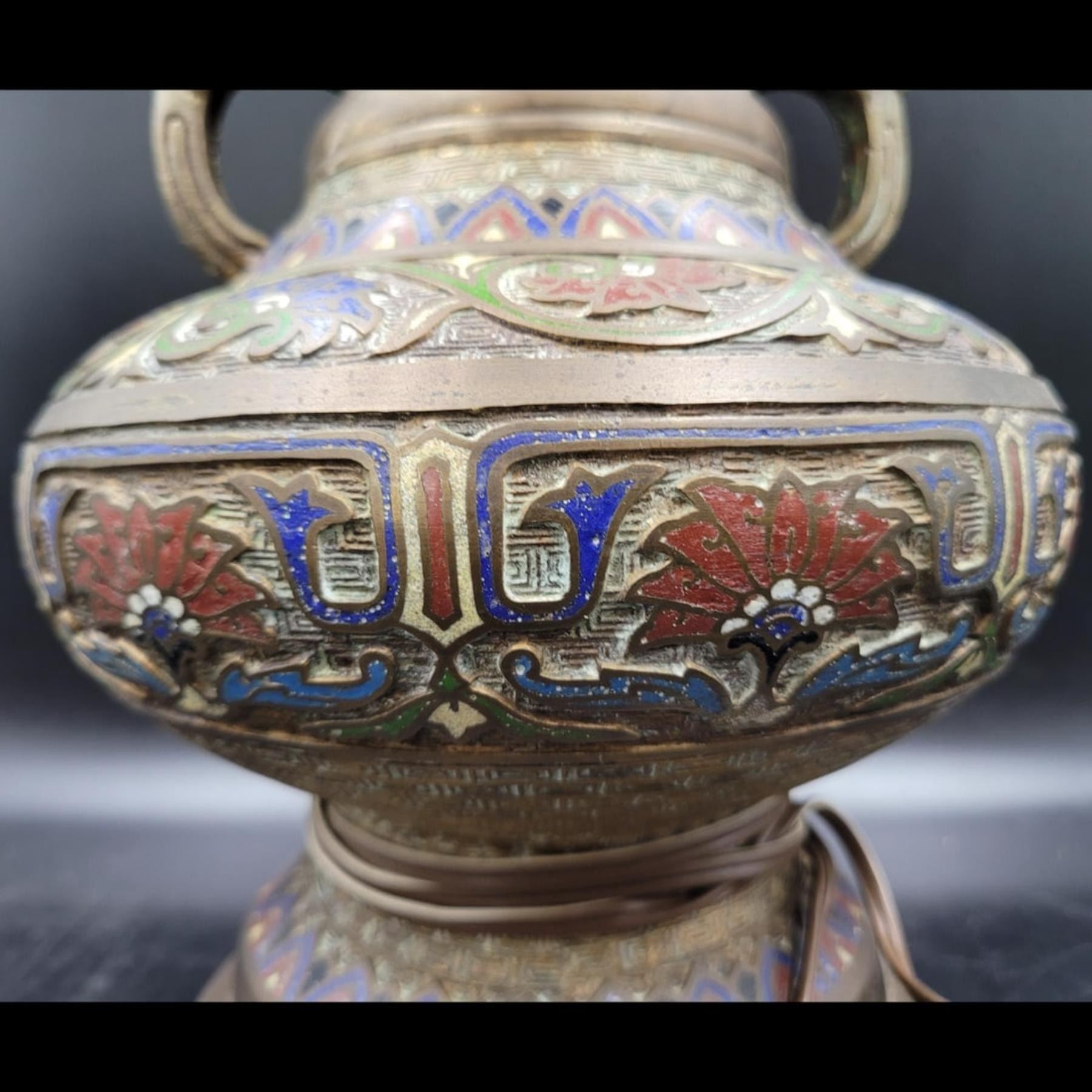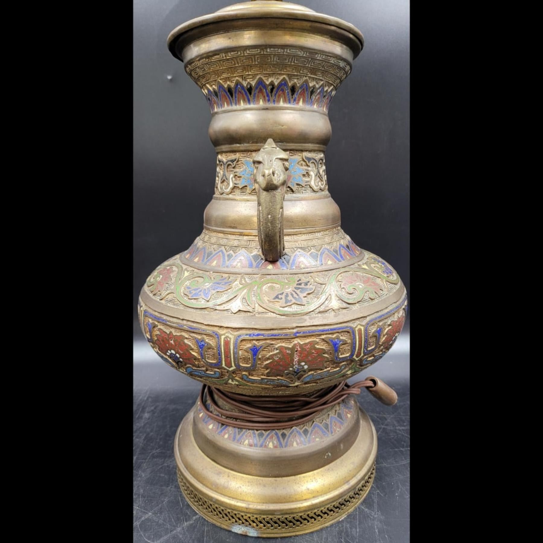 Pair Of Brass Champleve Table Lamps. measures approx. 32" X 9" X 9"