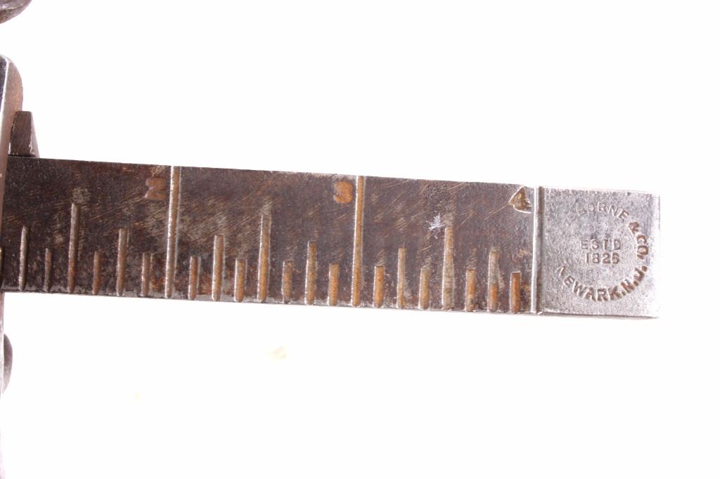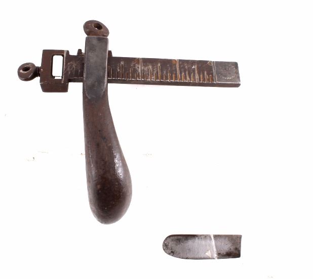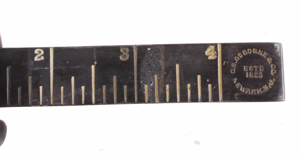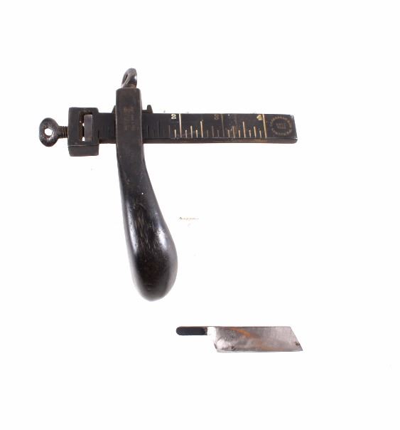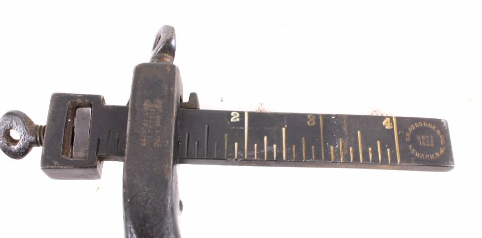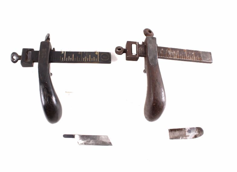 This lot features a pair of C.S. Osborne draw gauges. Used for leather cutting, both gauges have blades. The overall condition of the set is good for their age. Measures: 6" W x 6" D x 3" H