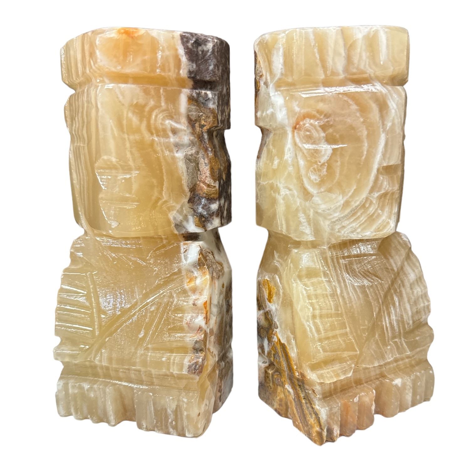 Pair Of Carved White Onyx Aztec Bookends