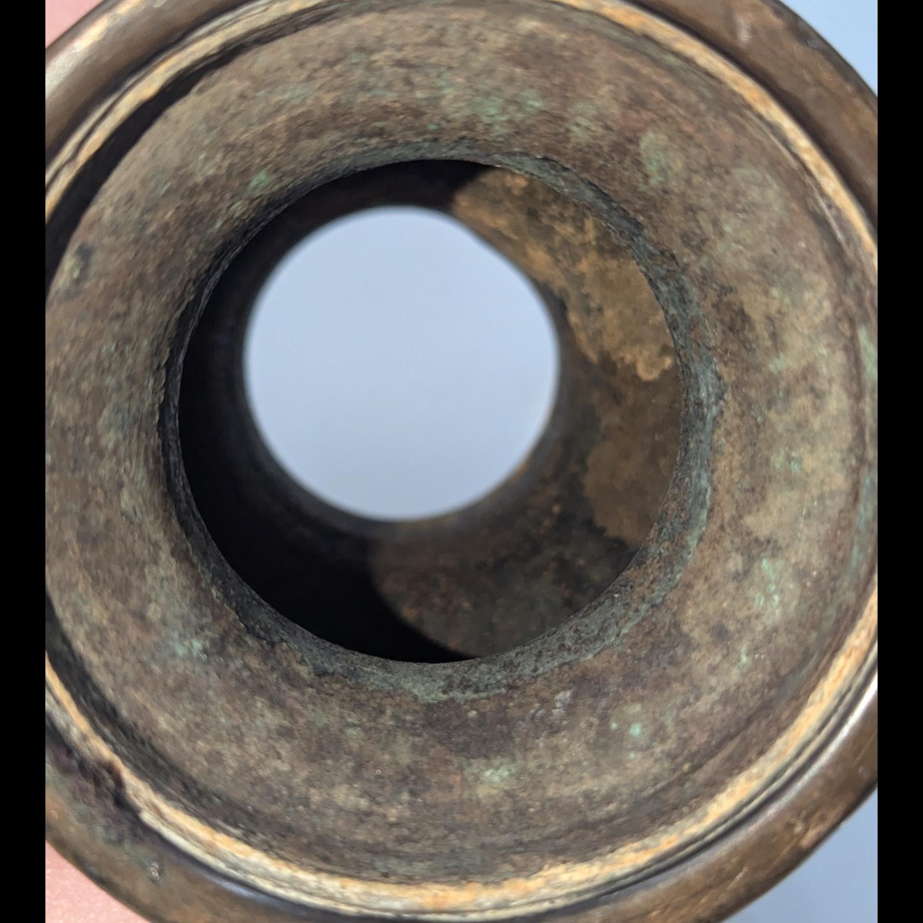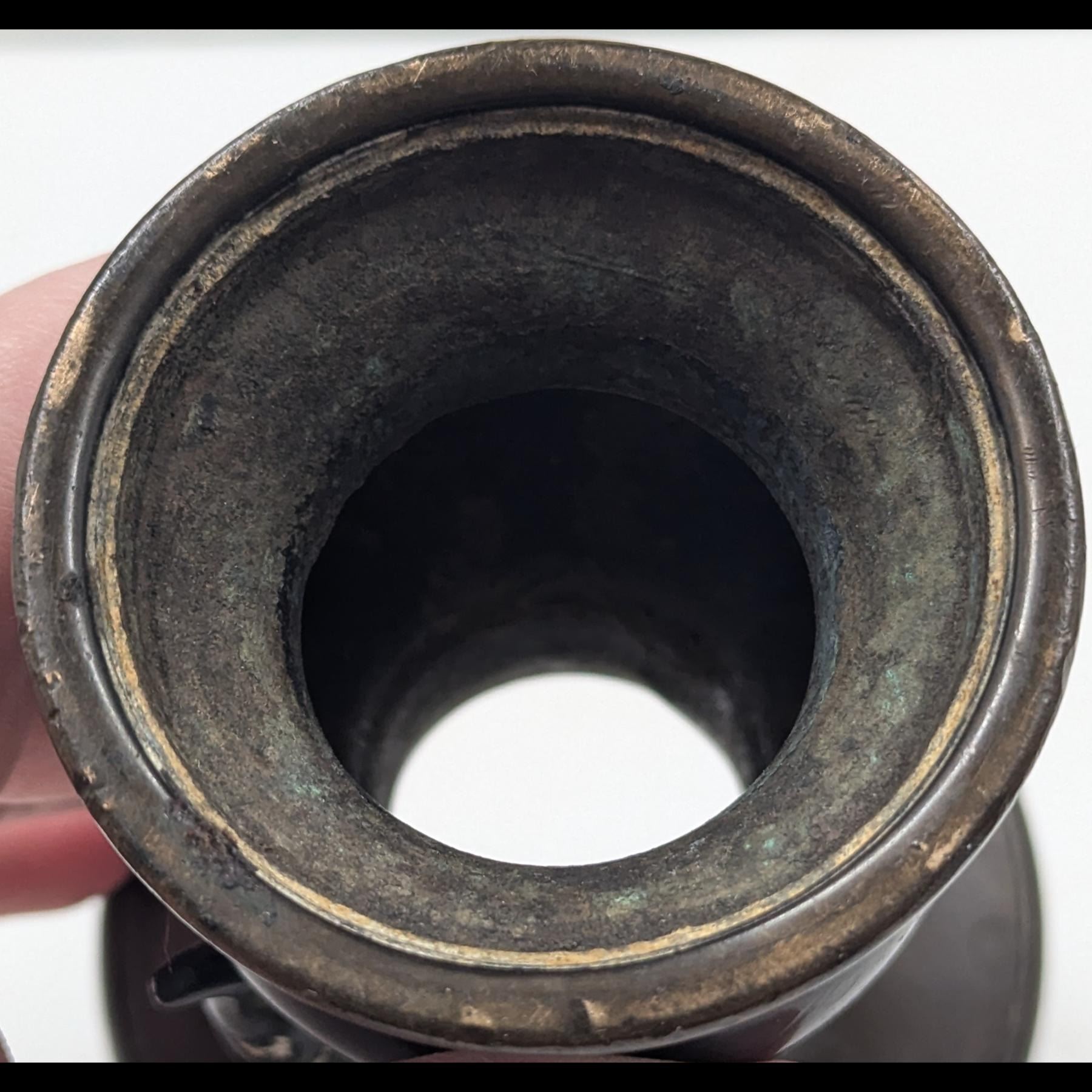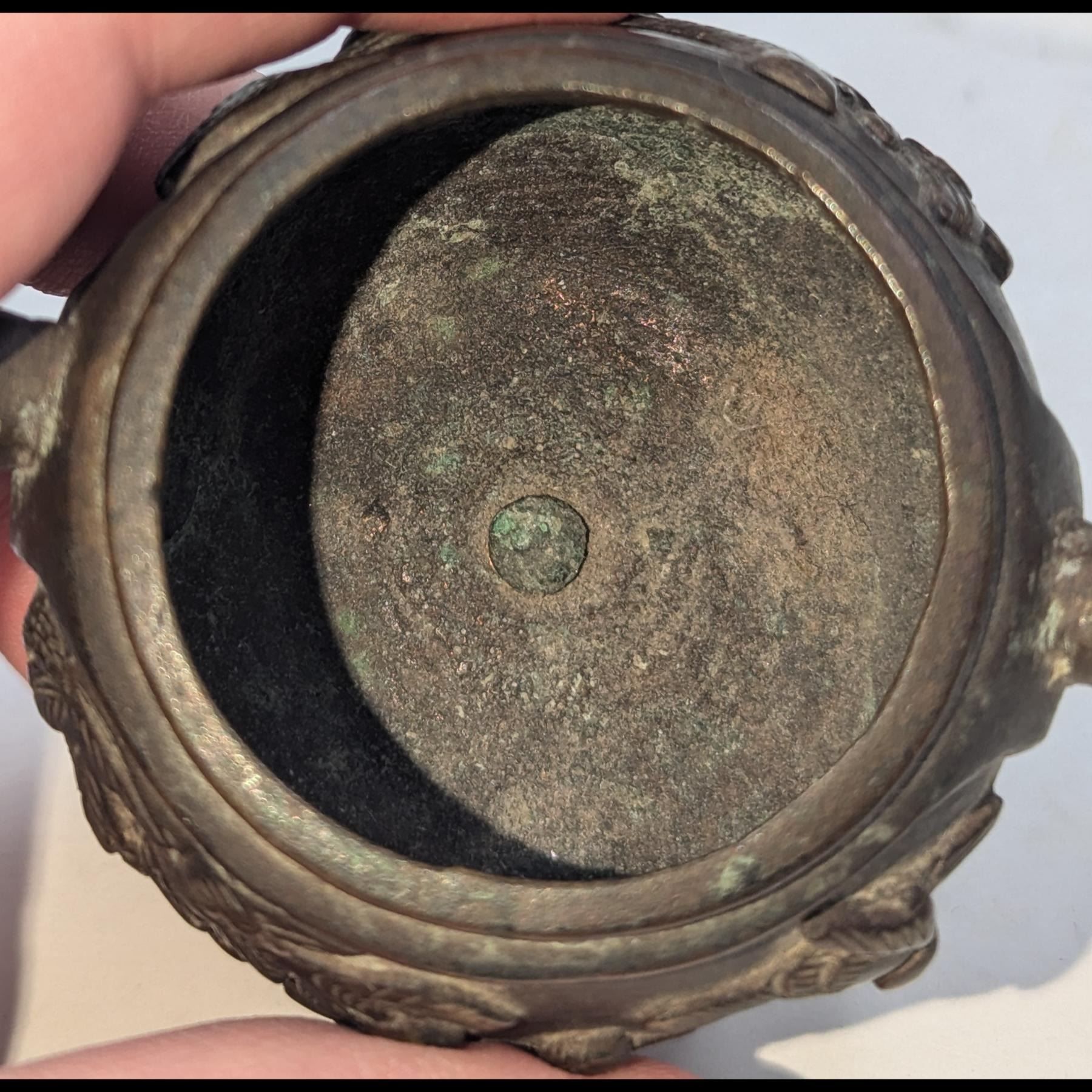 Pair Of Chinese Bronze Miniature Vessels, Both With Animal Head Handles