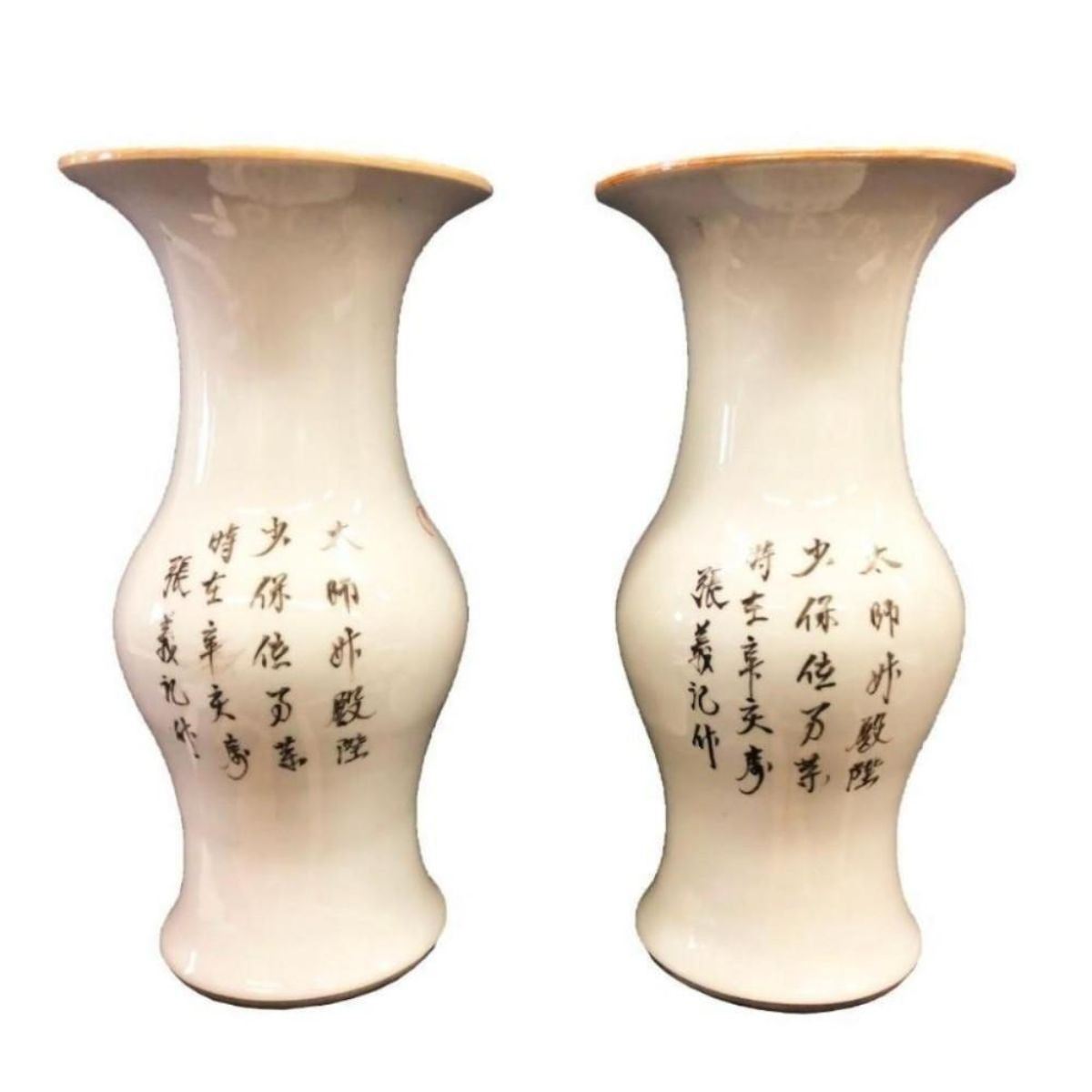 A Pair Of Chinese Painted Foo Dog Republican Porcelain Vases Marked Also On The Bottom. A Great Demonstration Of Artistic Ability In Painting The Movement Of The Dancing Foo Dogs On These vases. Each Vase Is Mark On The Bottom. View Photos For Details. - All items may be shipped or picked up locally within one week of sale. We will provide shipping estimates to the winning bidders or winning bidders may arrange their own shipping.