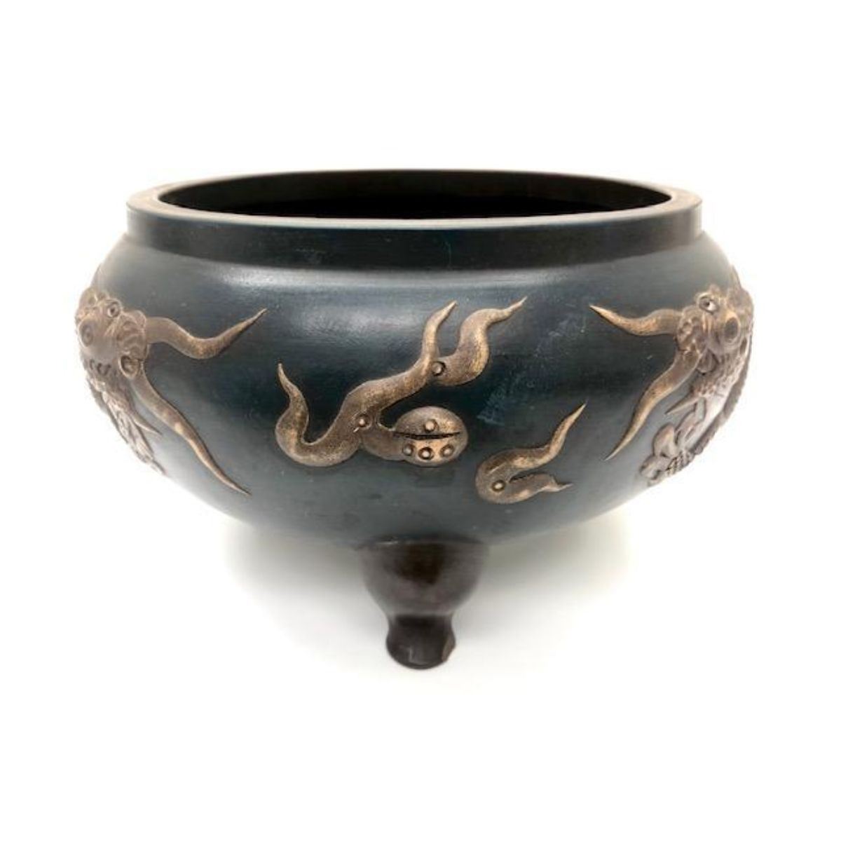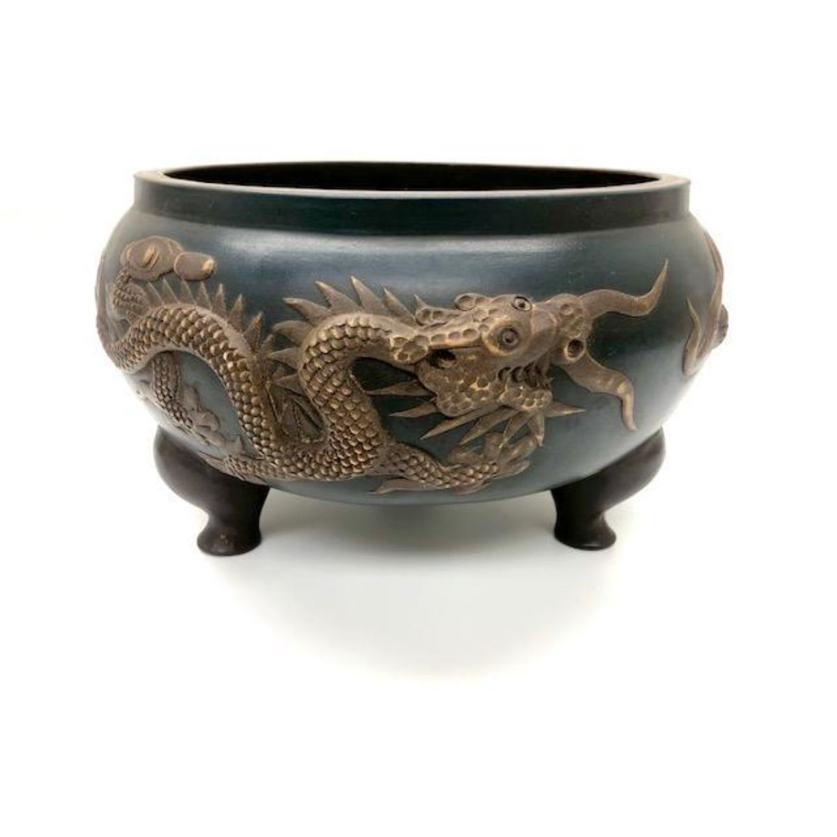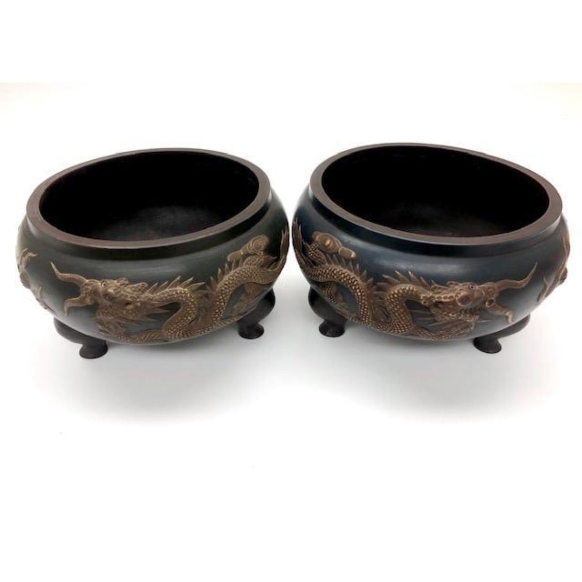 Pair Of Bronze Dragon Footed Censors. Height 6"