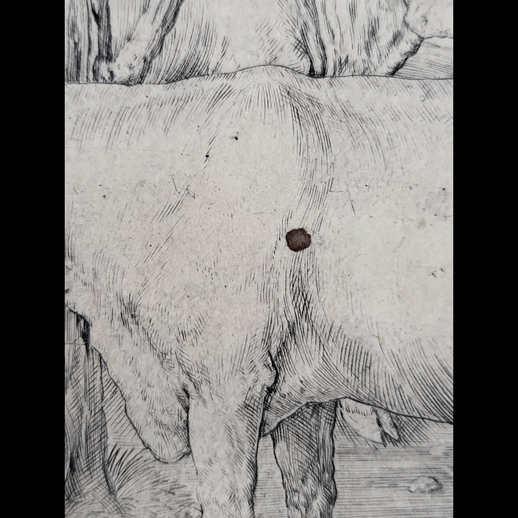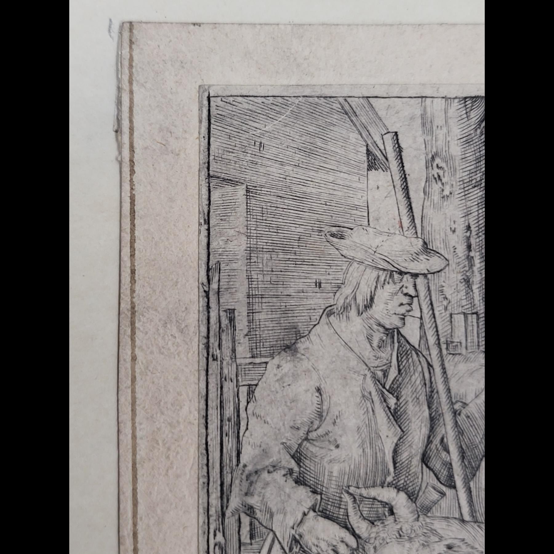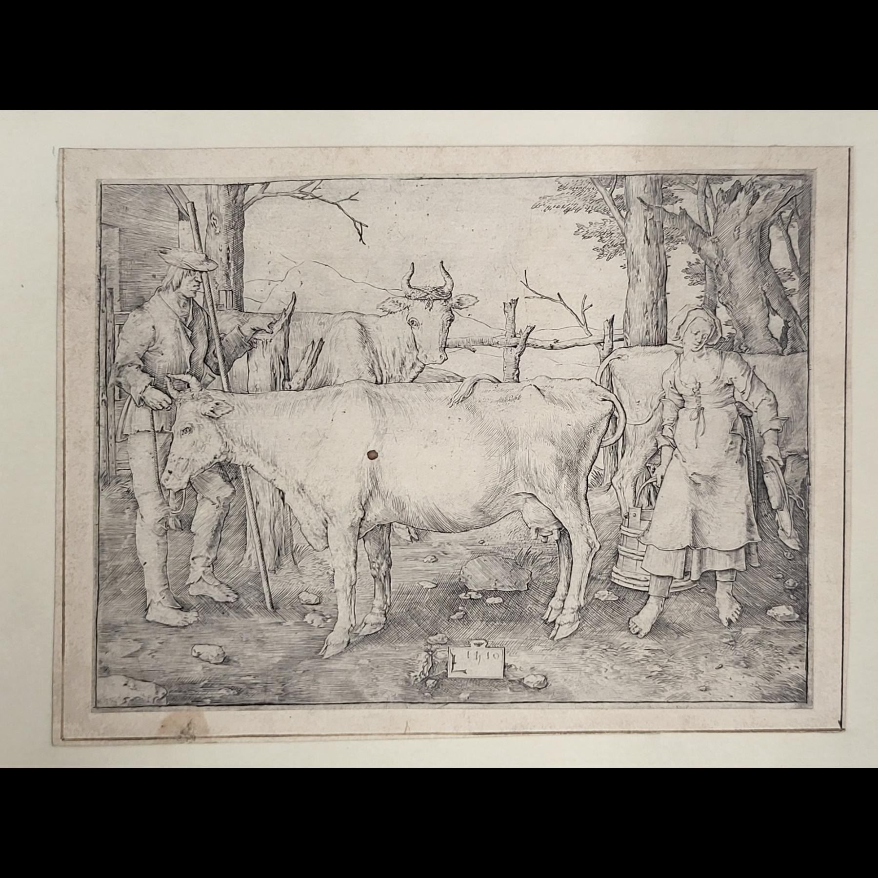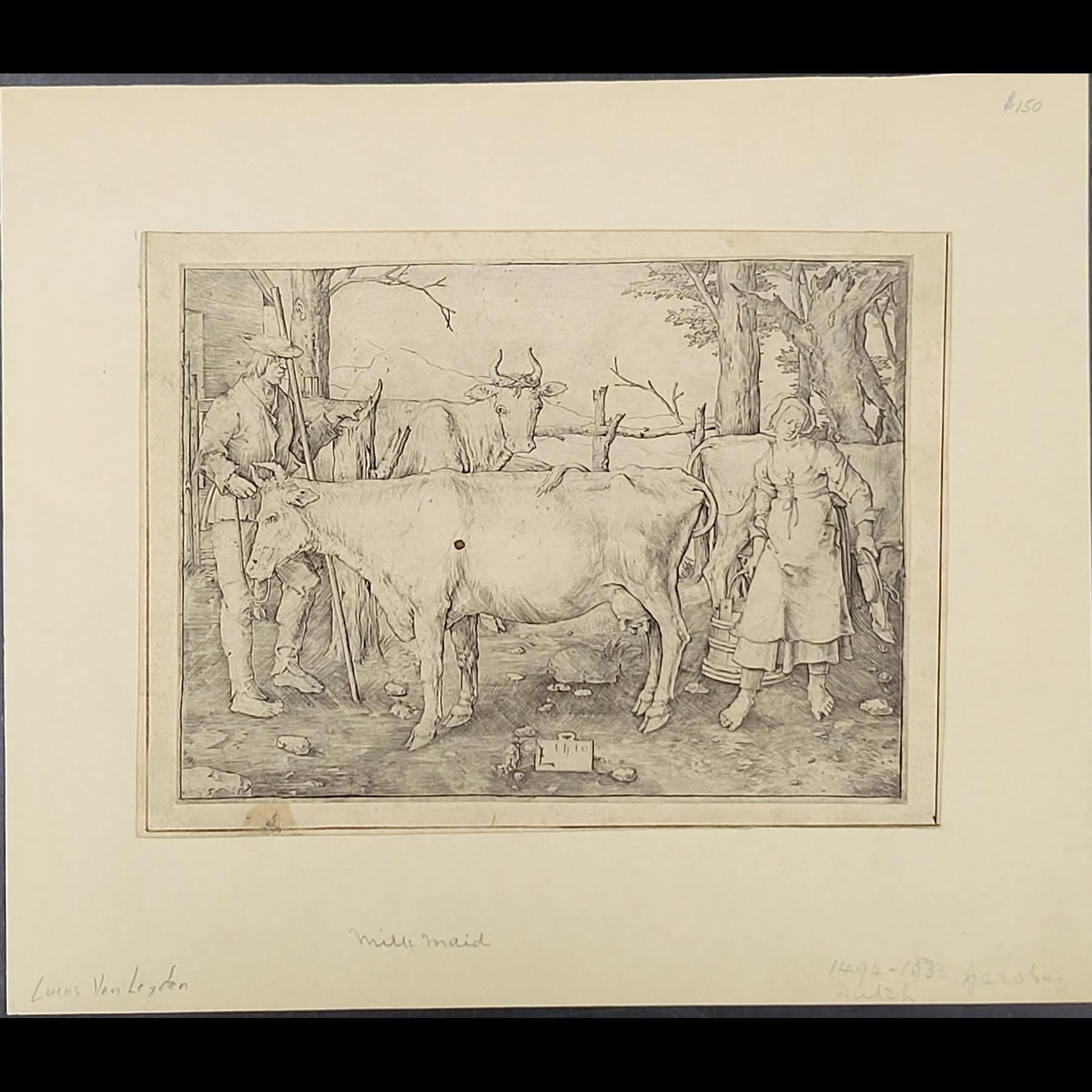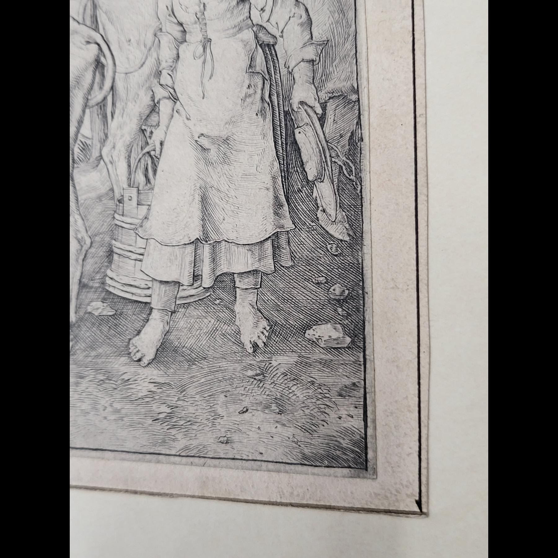 Lucas Van Leyden (Dutch, 1494-1533). "Milkmaid" 16th Century (1510) etching measures 7" x 5" sight.