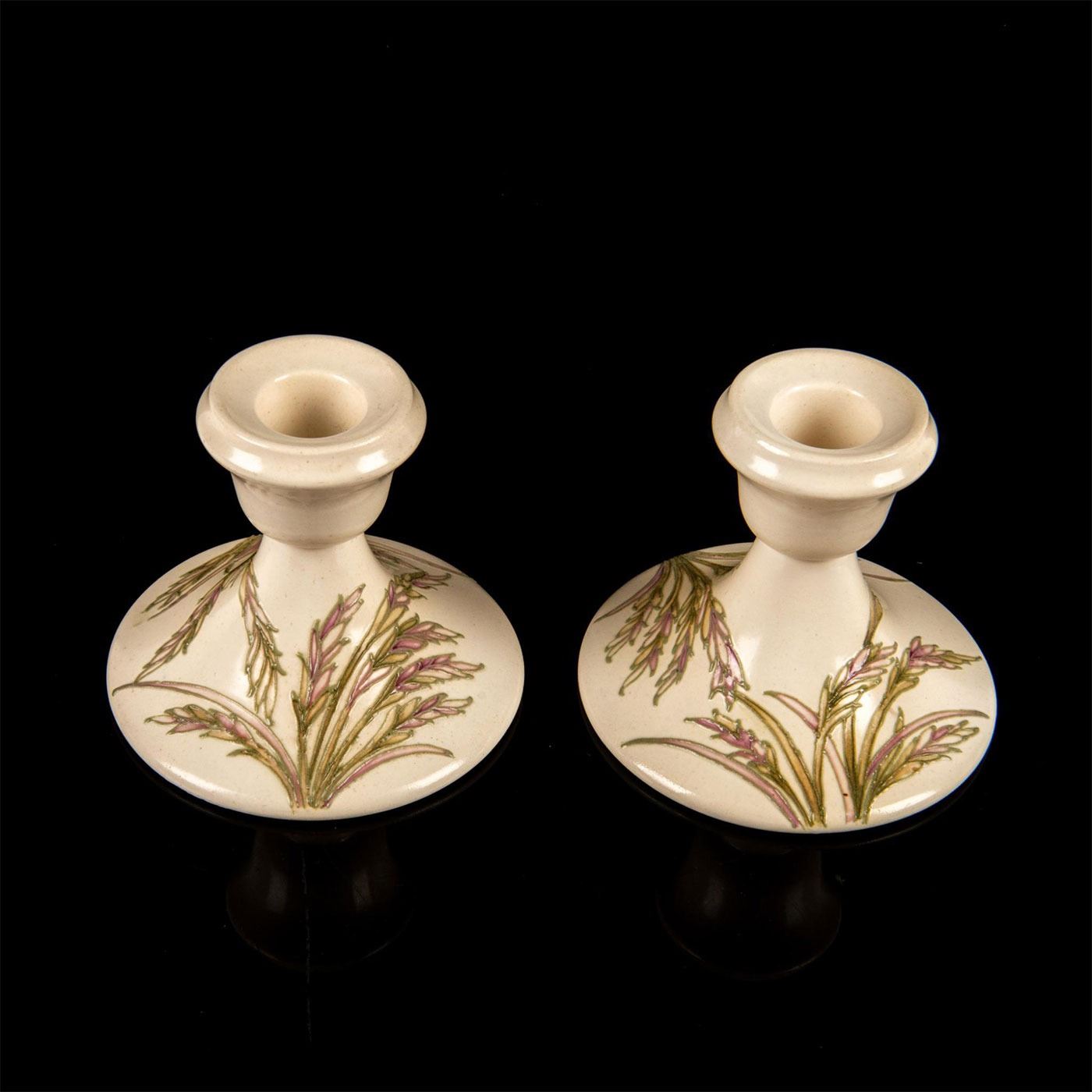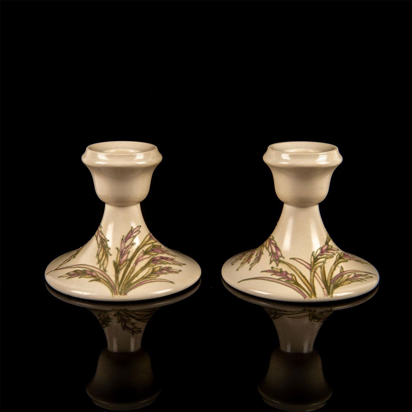 Pair Of Moorcroft Candlesticks, Waving Corn Pattern