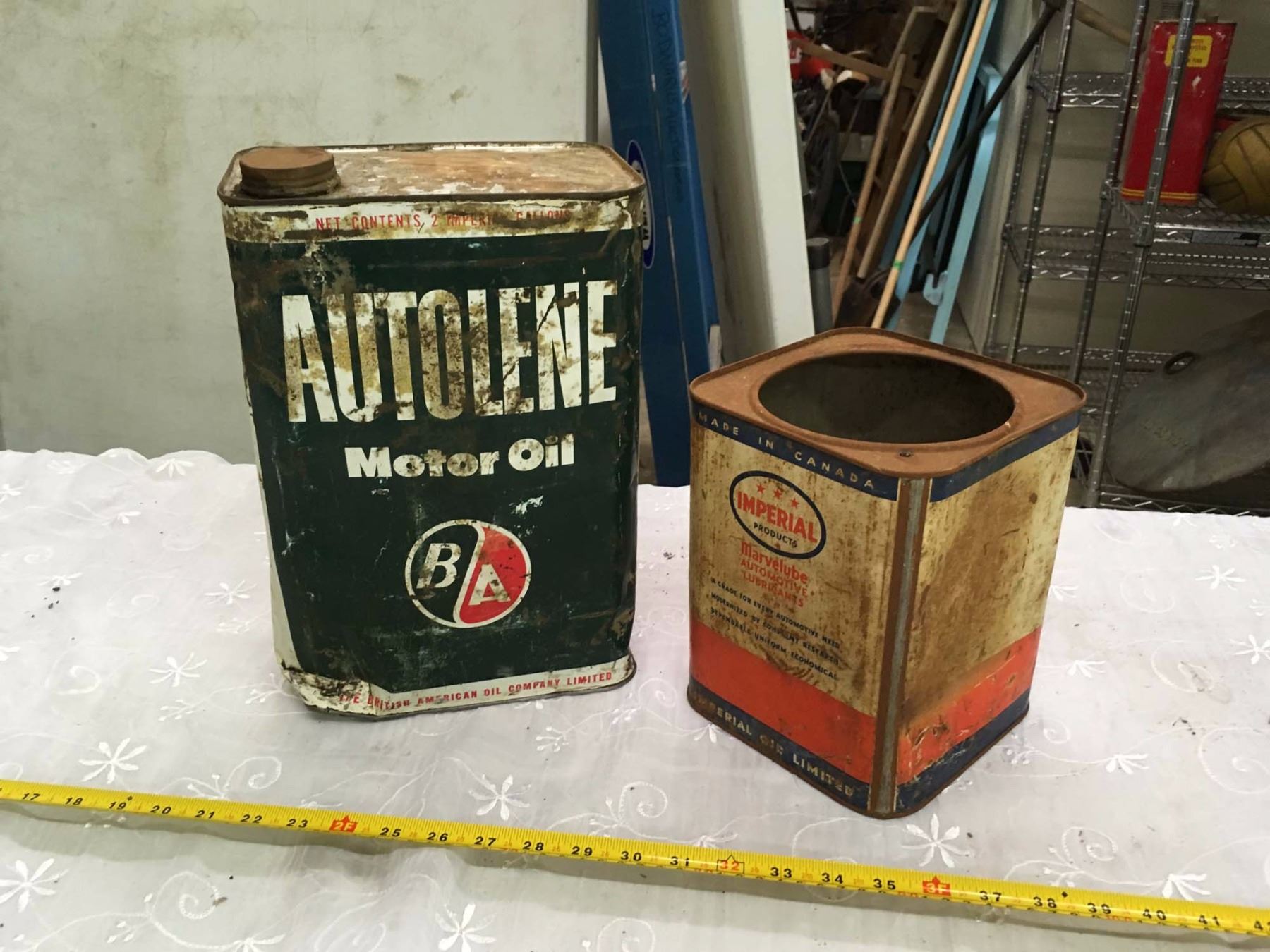 Pair Of Oil Tins (BA Autolene And Imperial Marvellube)