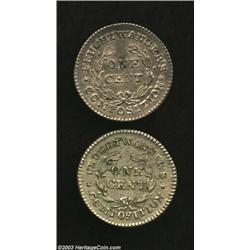 Pair Of One Cent Feuchtwanger Composition Tokens. Included are: <B>1837 One Cent Die Combination-...