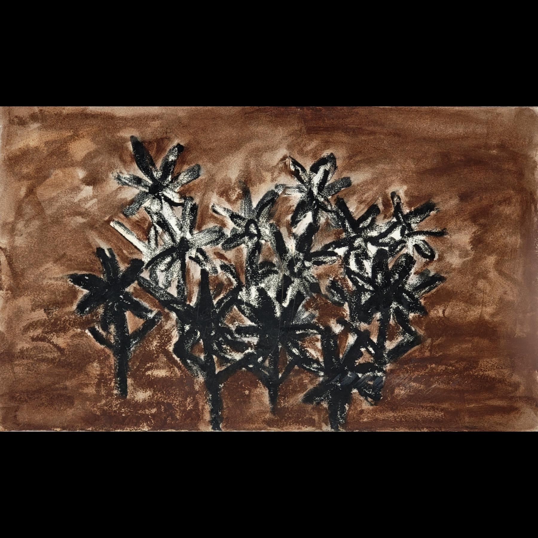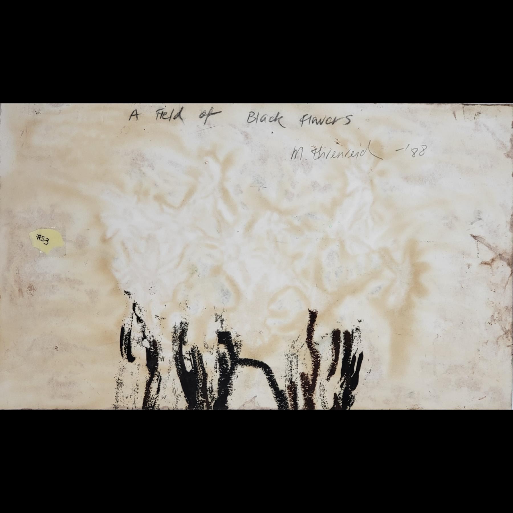 Pair Of Pencil Signed Original Artworks. 1) Framed original charcoal & graphite drawing. Artist signed. Measures approximately 11" x 13-1/2" framed. 2) Watercolor drawing titled, "A Field of Black Flowers." Artist signed, dated 1988. Measures approximately 15" x 9"