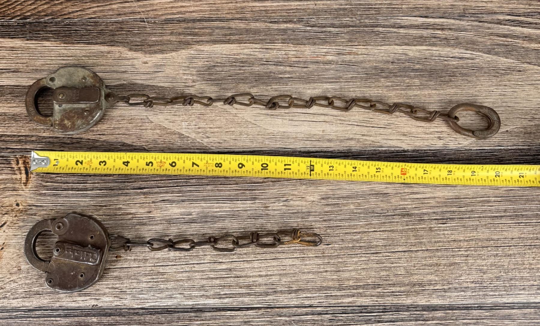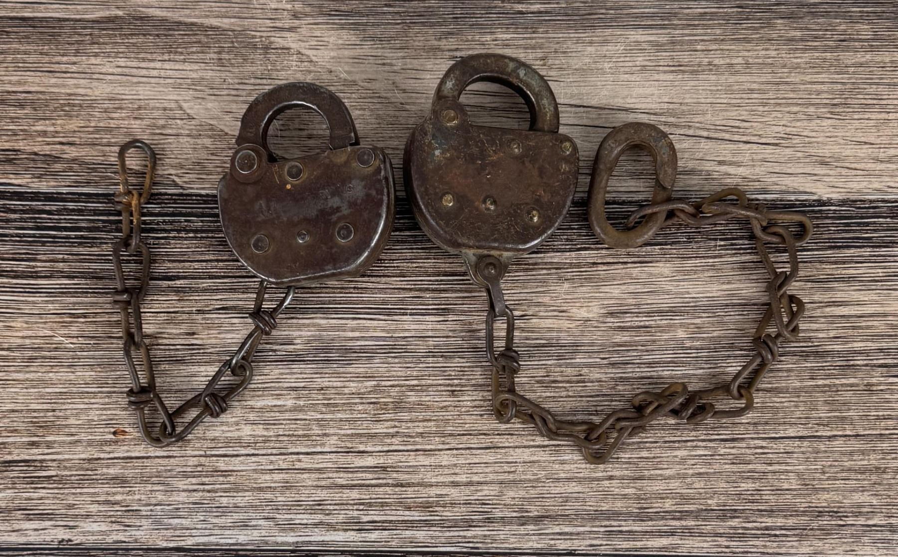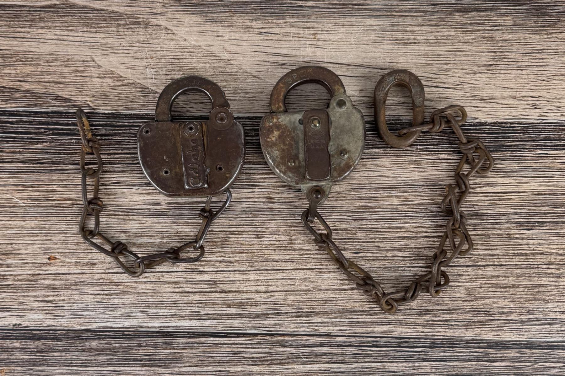 Lot consists of a Southern Pacific Railroad switch lock and an Atchison, Topeka & Santa Fe Railway switch lock.