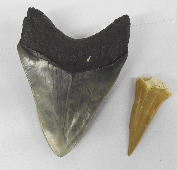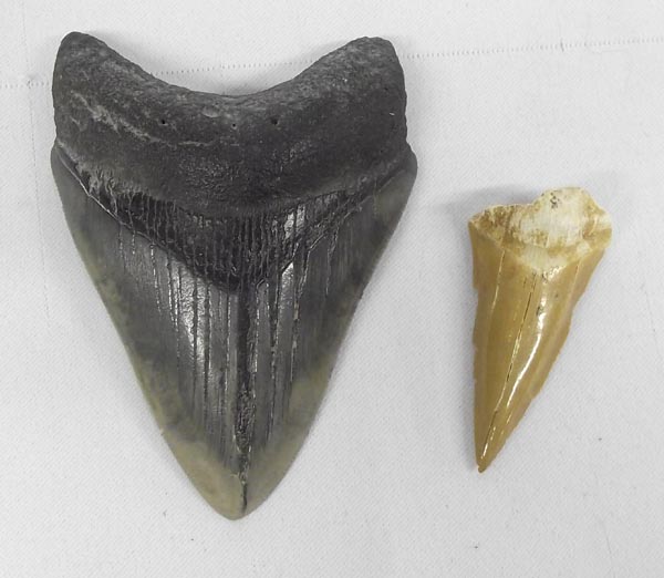Pair Of Sharks Teeth. Largest Sharks tooth measures approx. 4'' x 3''. Buyers Pay Actual Shipping and Handling Charges(see terms and conditions for more information).