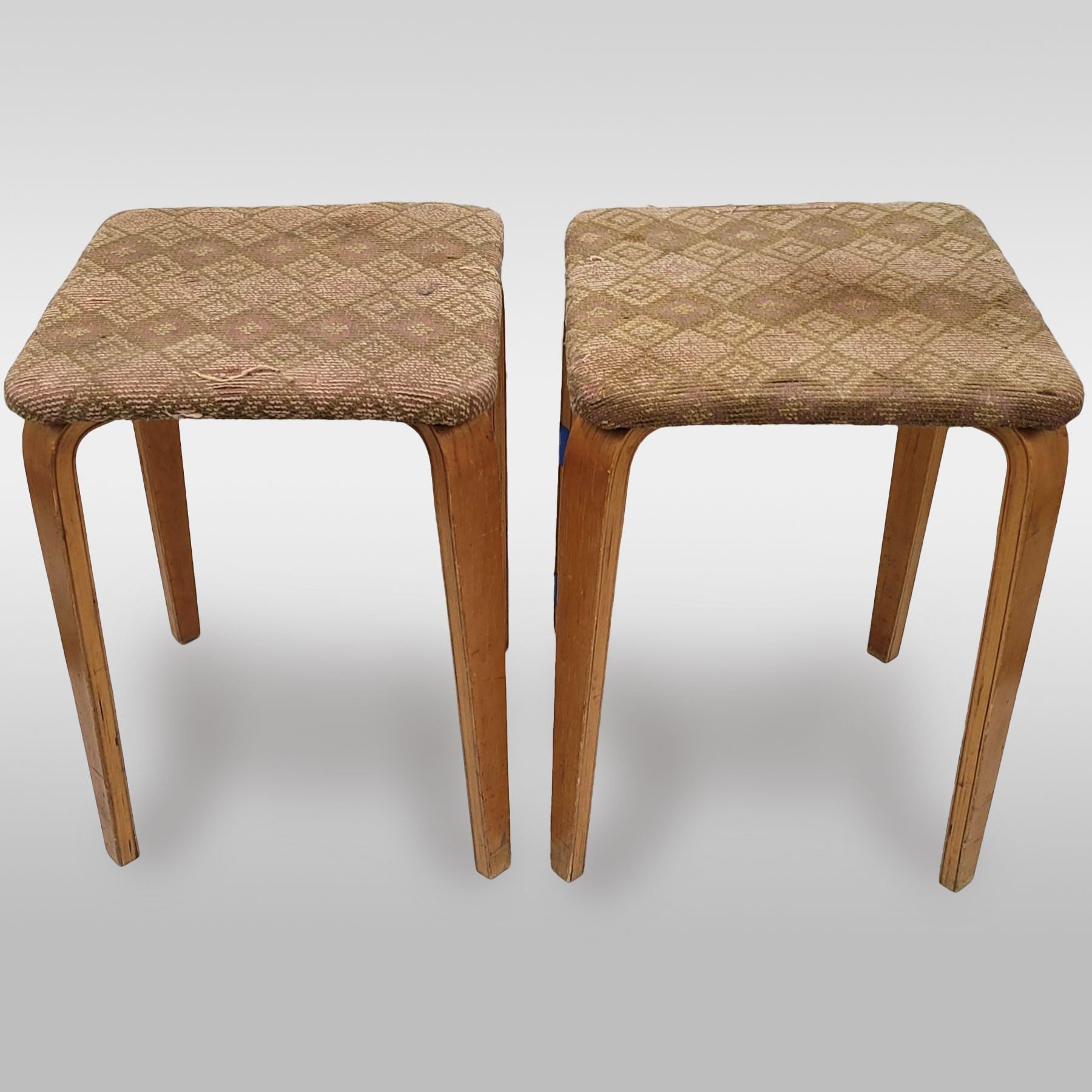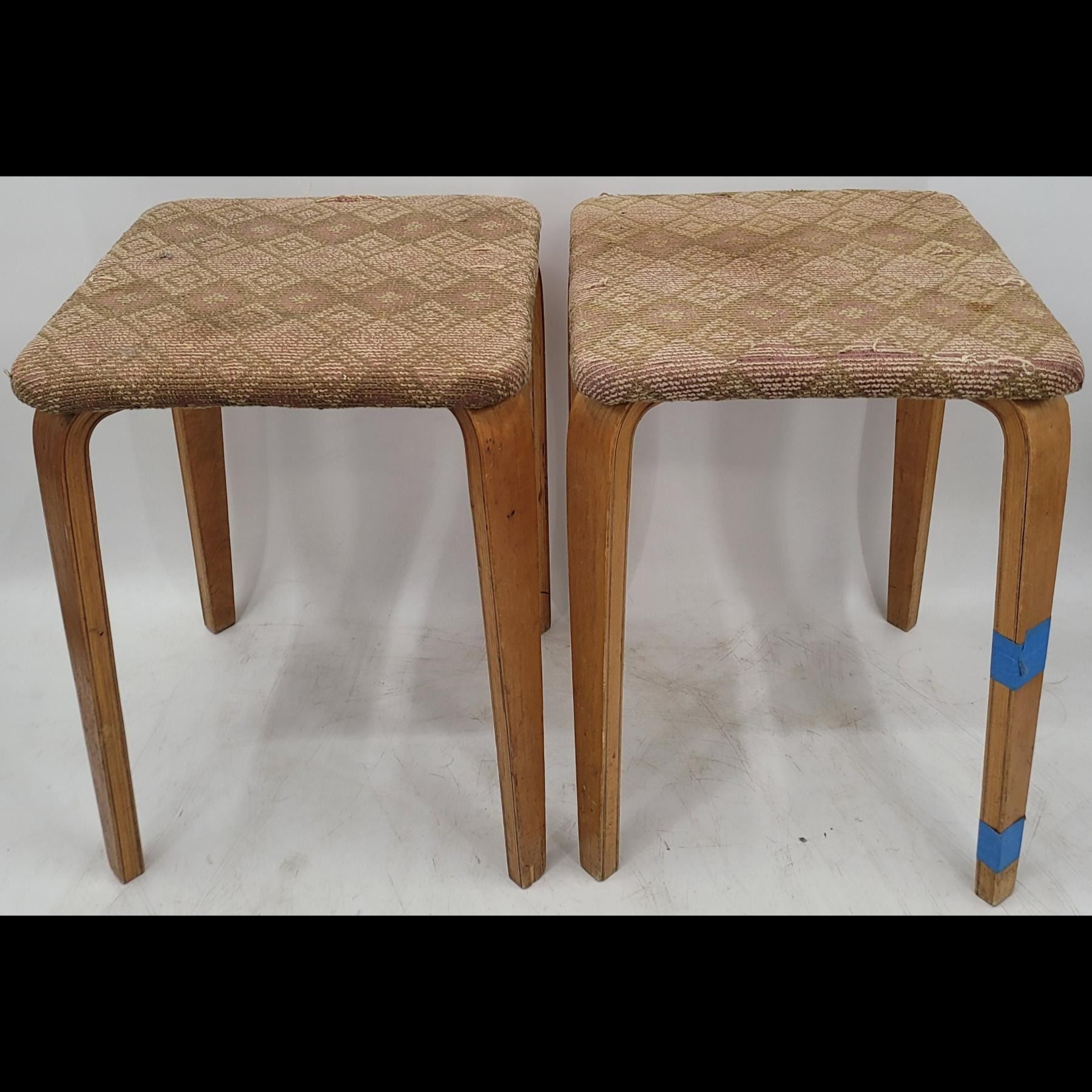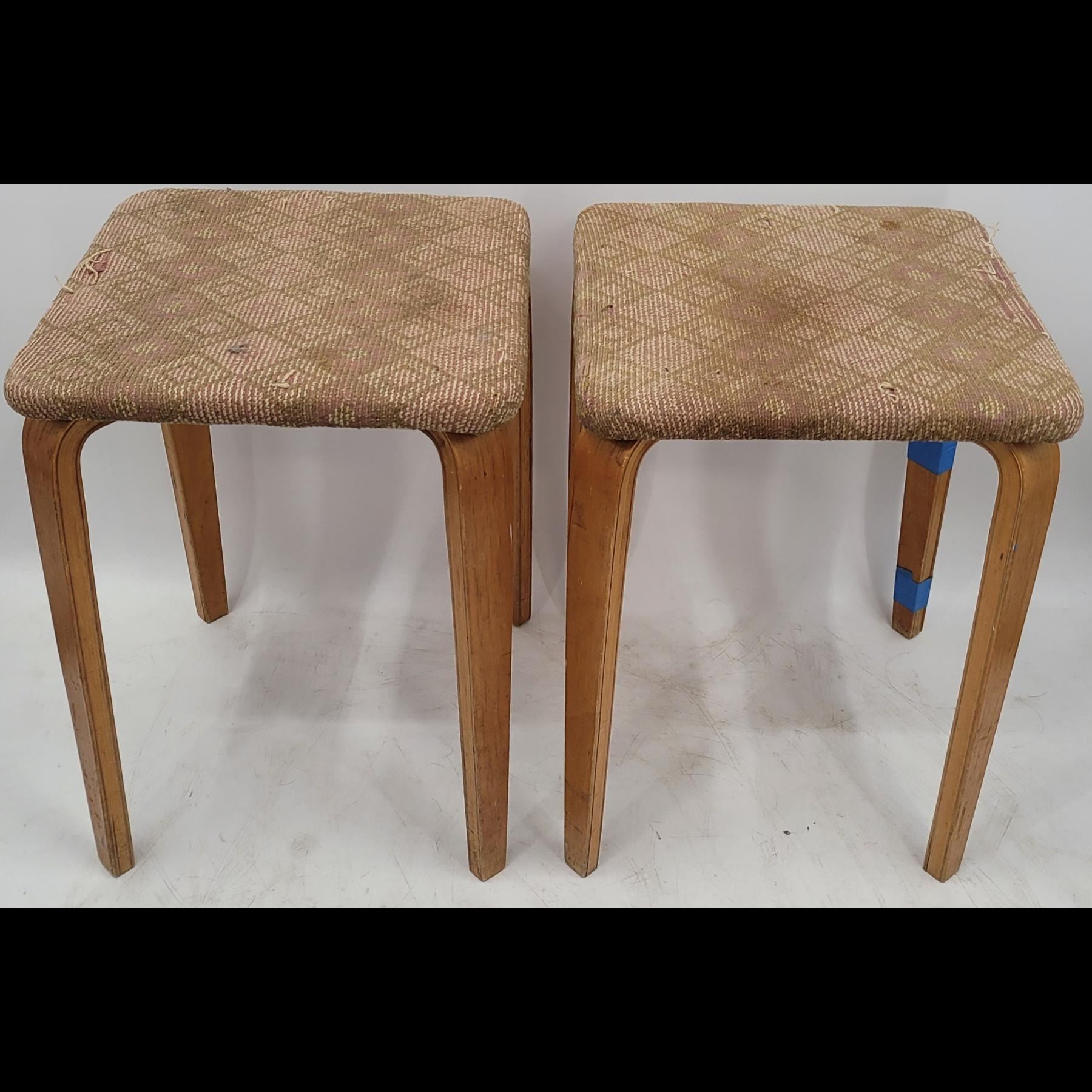 Pair Of Vintage 1950s Style Stools. Stools show significant wear, please see pictures. Measures approx. 18" X 13" X 13" each.