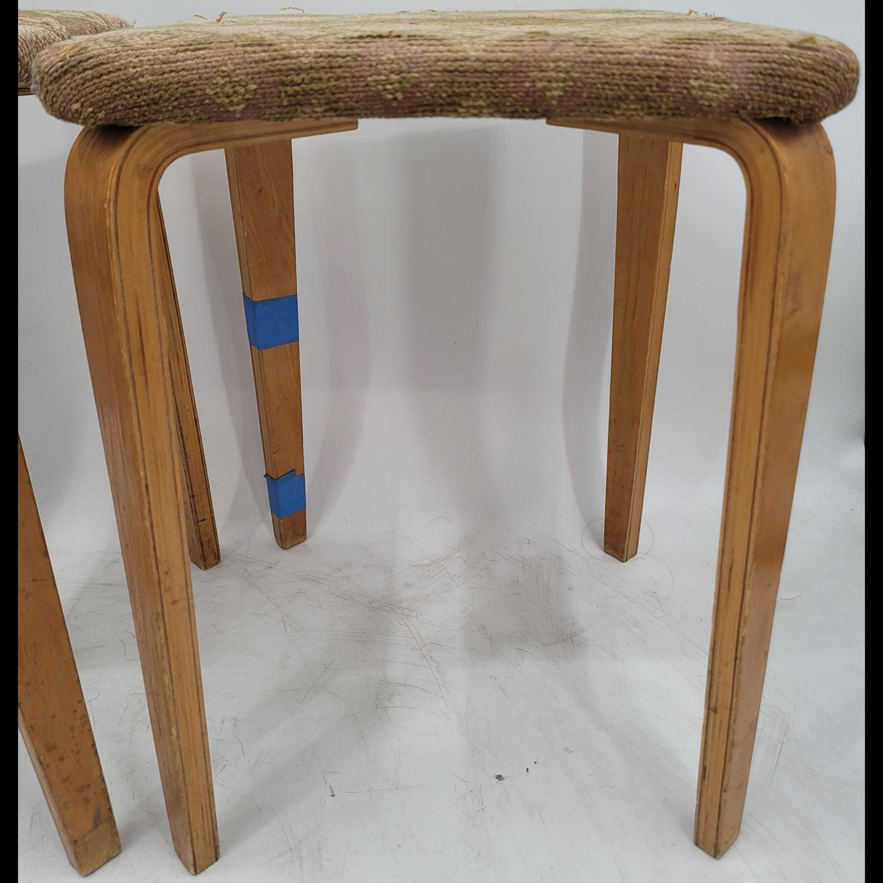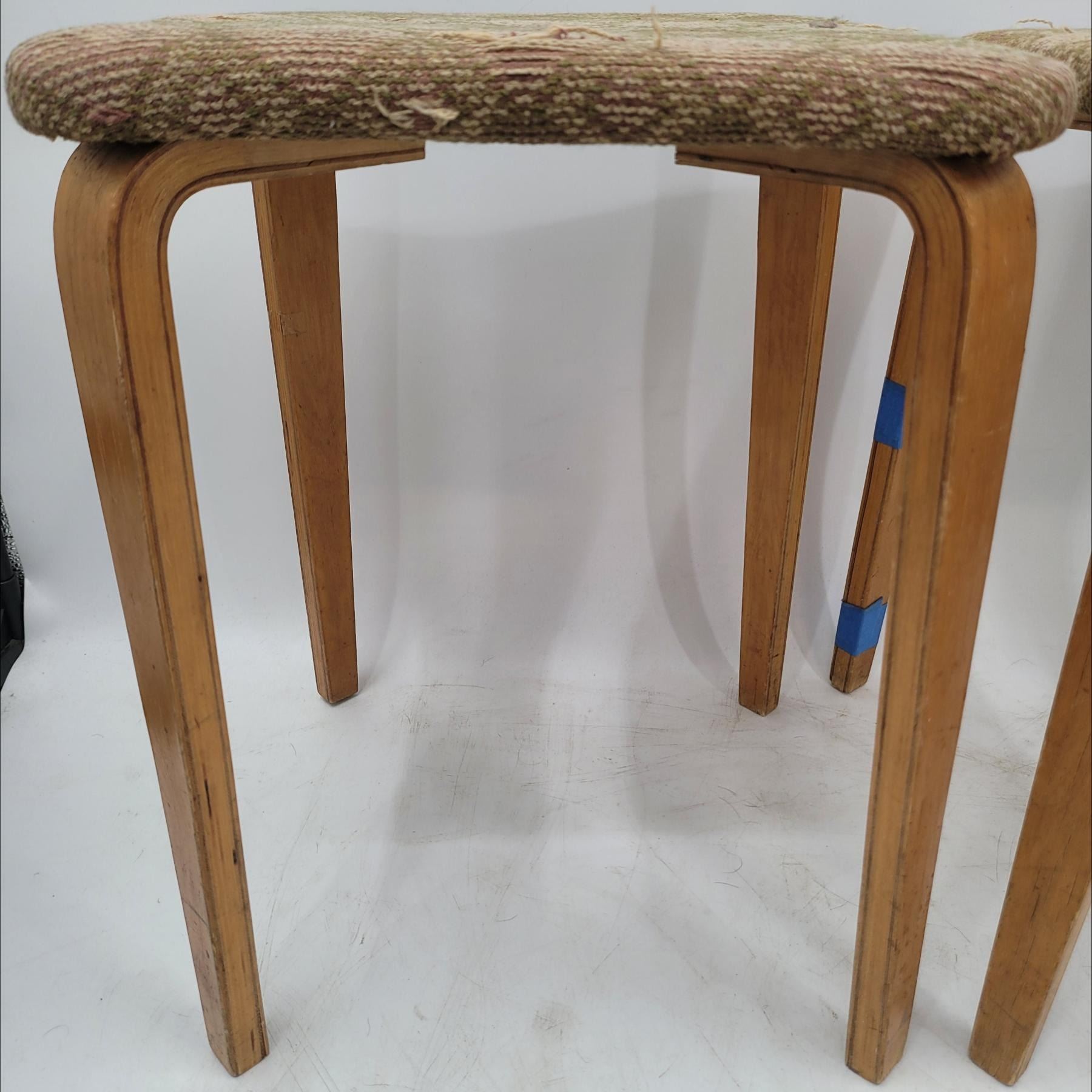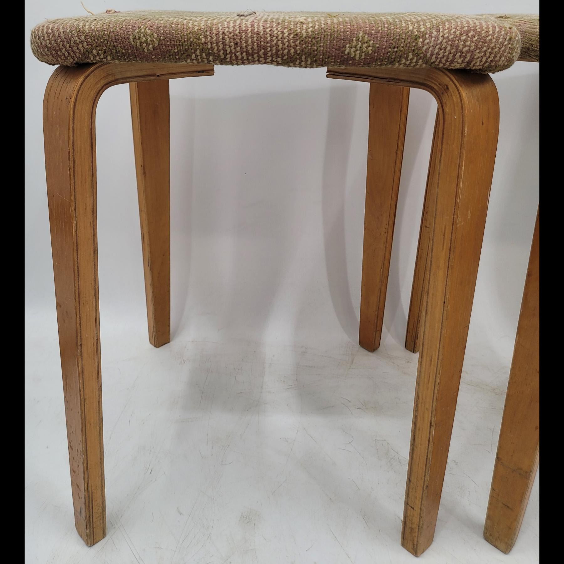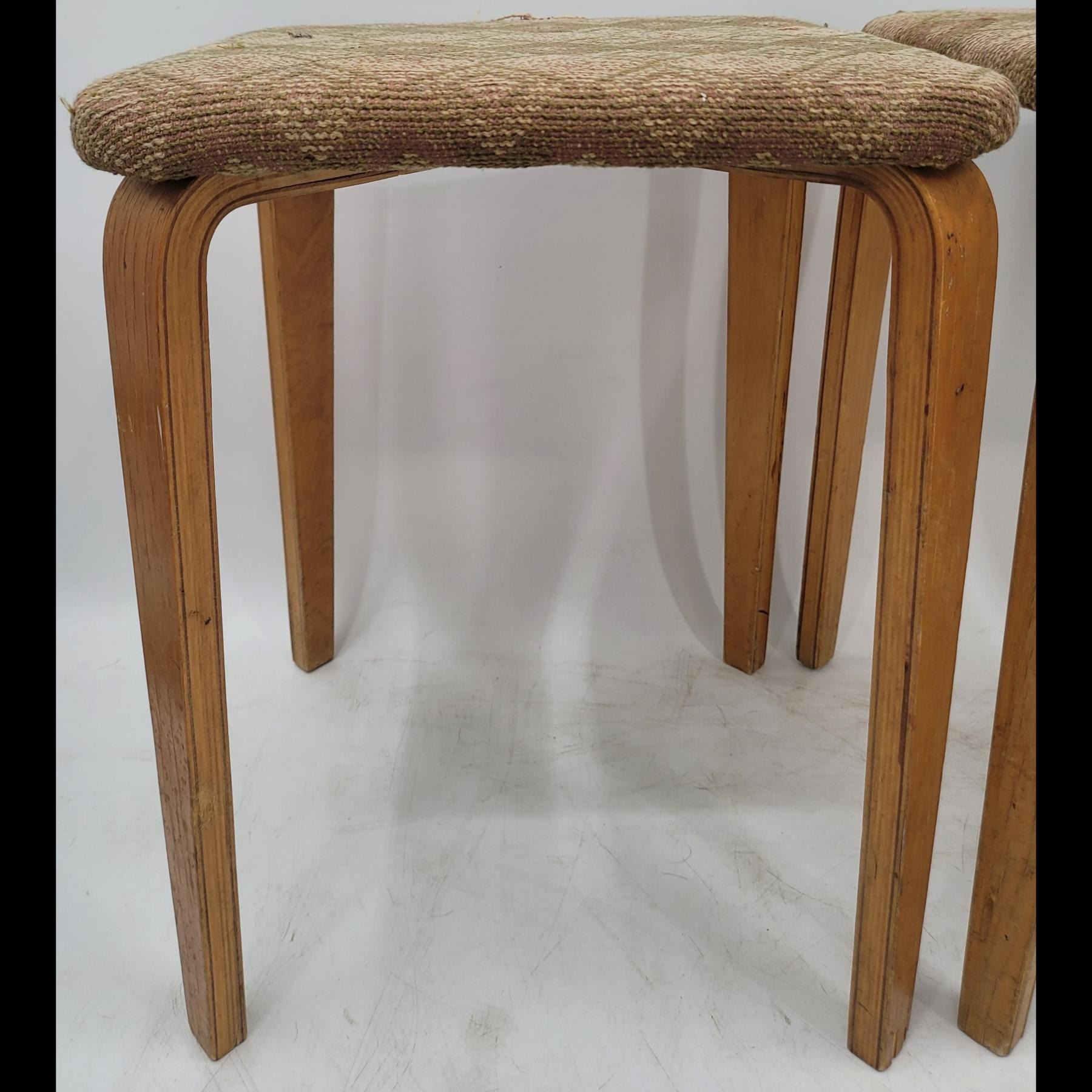 Pair Of Vintage 1950s Style Stools. Stools show significant wear, please see pictures. Measures approx. 18" X 13" X 13" each.