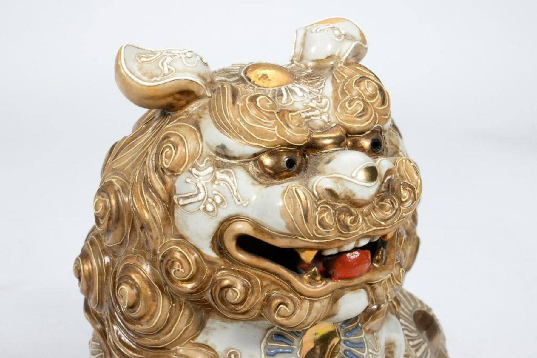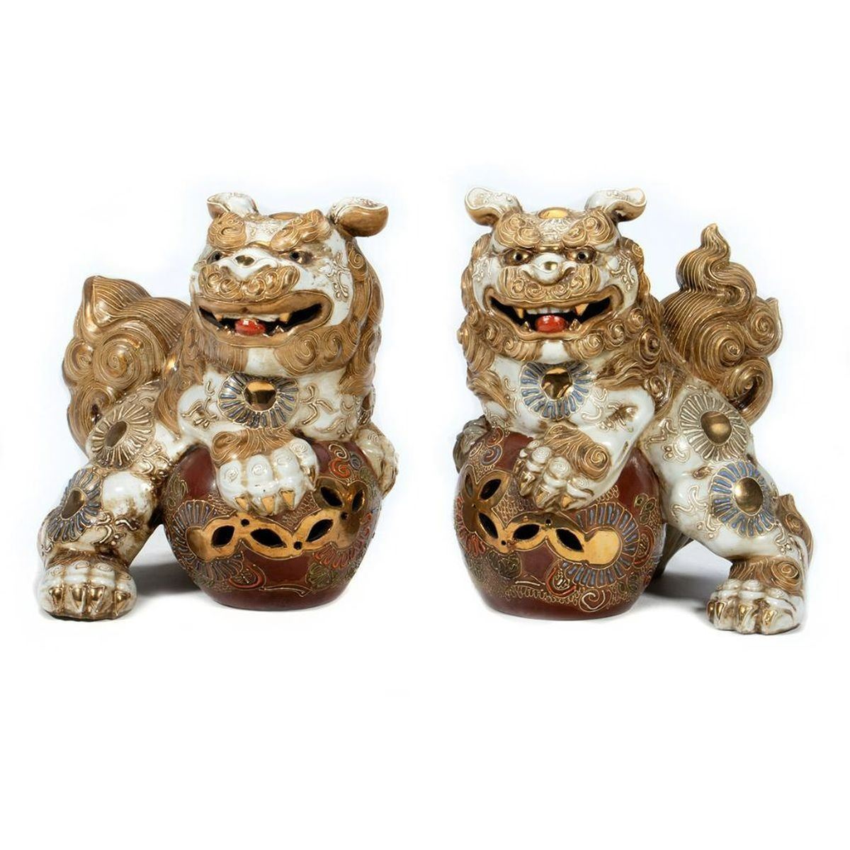 Each decorated with gilt scrolls. 9 1/2 in. h. 7in. w. Condition: Very good, no chips or cracks.