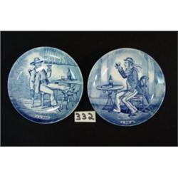 Pair of 4 1/2" Royal Sphinx transferware plates, NOS 3 & 6 of a set depicting cigar smoking and tavern drinking. Made in Holland and marked, age unknown. Good cond.