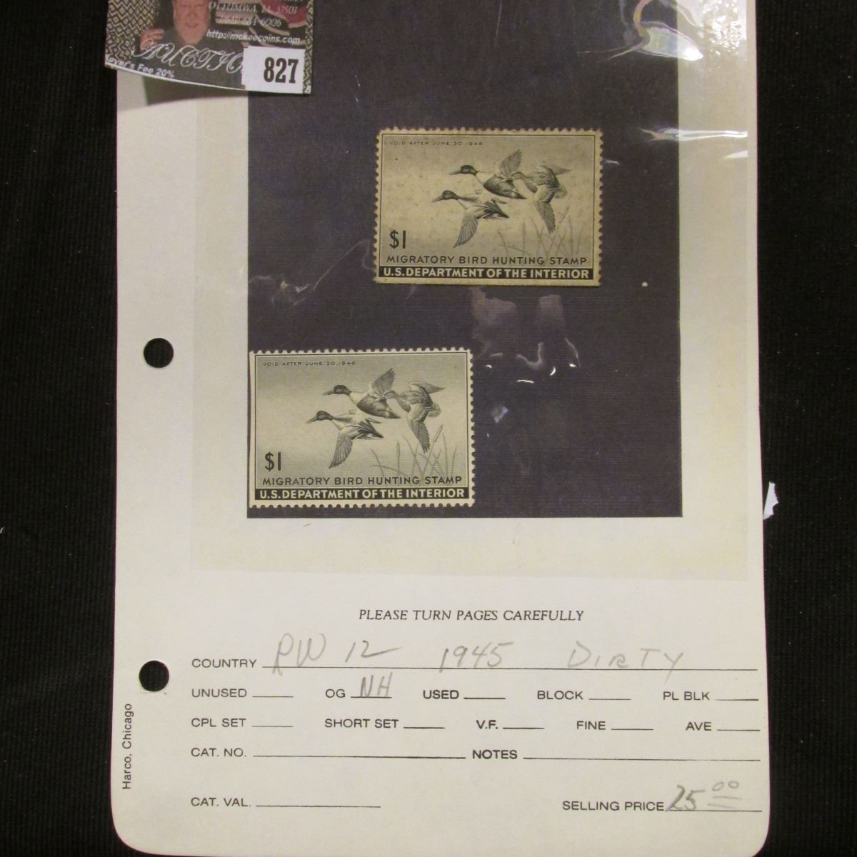 Pair RW12 1945 U.S. Department of Agriculture Migratory Bird Stamp. One slightly dirty. Both with partial gum.