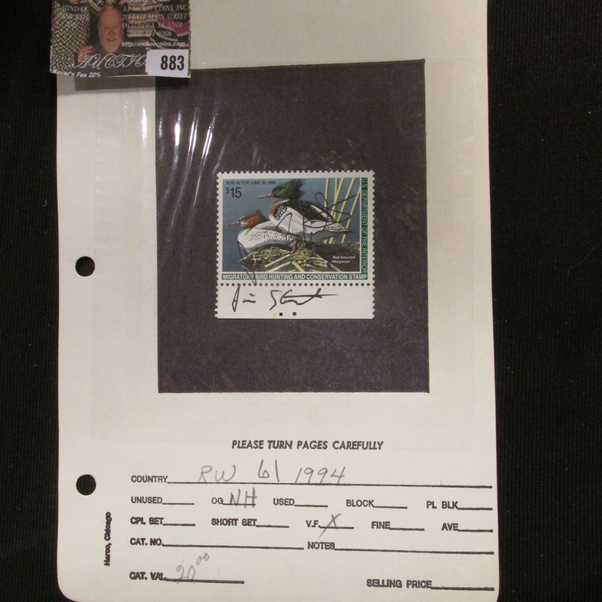 Pair RW61 1994 U.S. Department of Agriculture Migratory Bird Stamps, Very Fine, partial gum, signed.