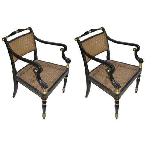 <tr><td>Title:Pair Regency Parcel-Gilt Caned Armchairs</td></tr>