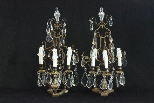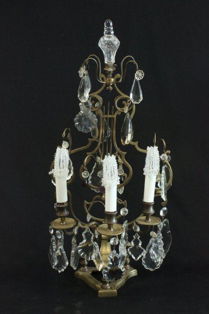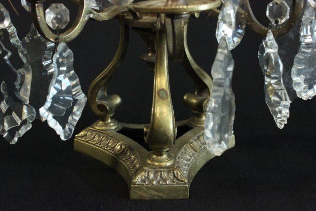 Skeleton form lyre frame. Hanging prisms. Approx. 23" H x 10" W.