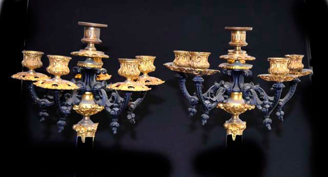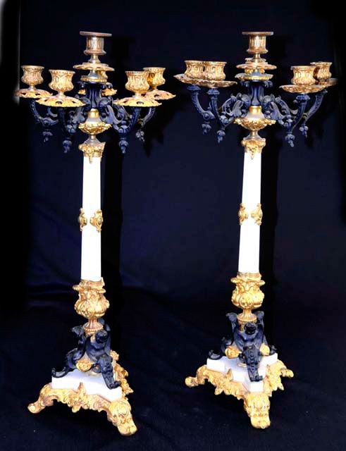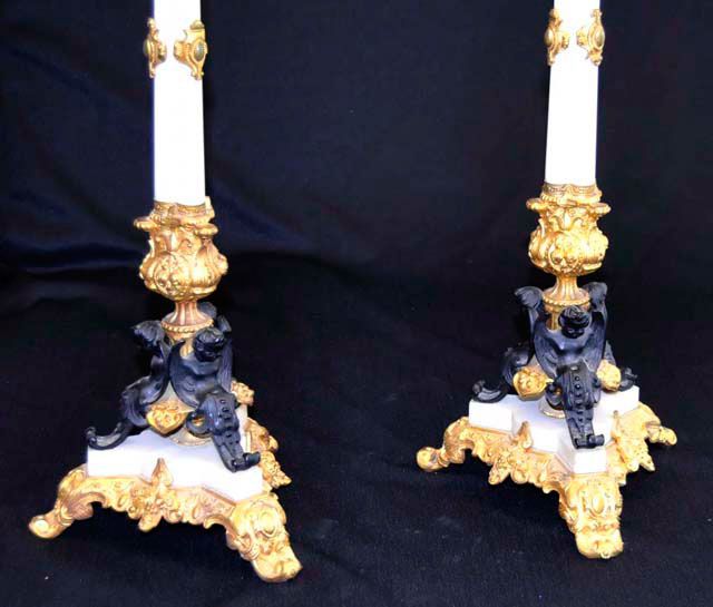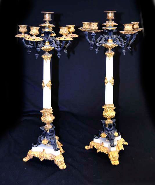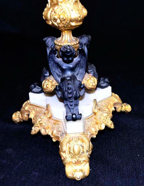 Figural, with marble columns, retaining center cupola bobeches. Approx. 26.5" H Please read our terms of sale.
