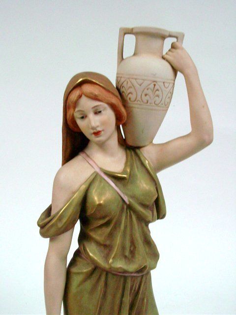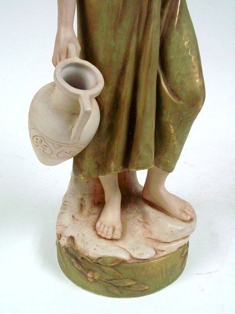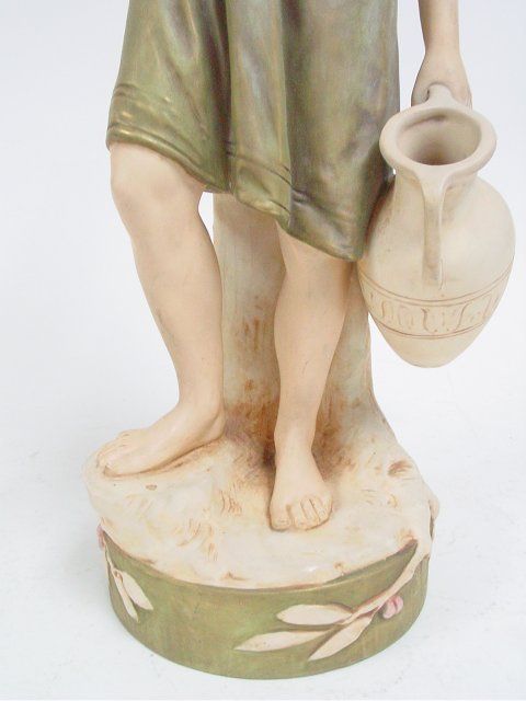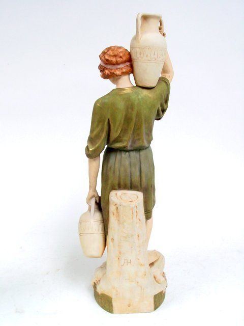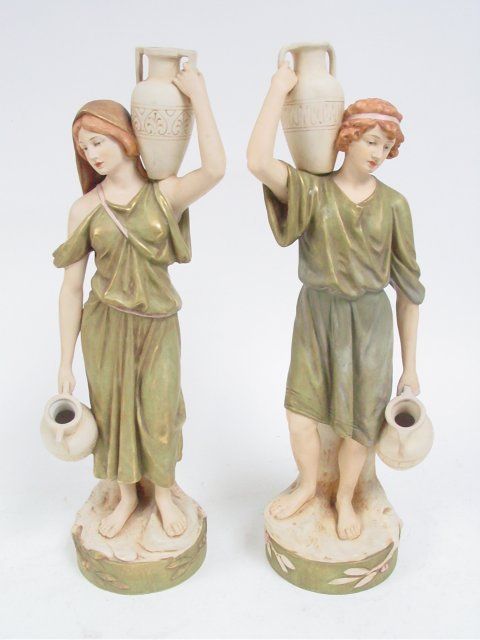 Man & Woman Carrying Water Bucket", triangle mark on bottom & signed on back AH. 18"H x 5