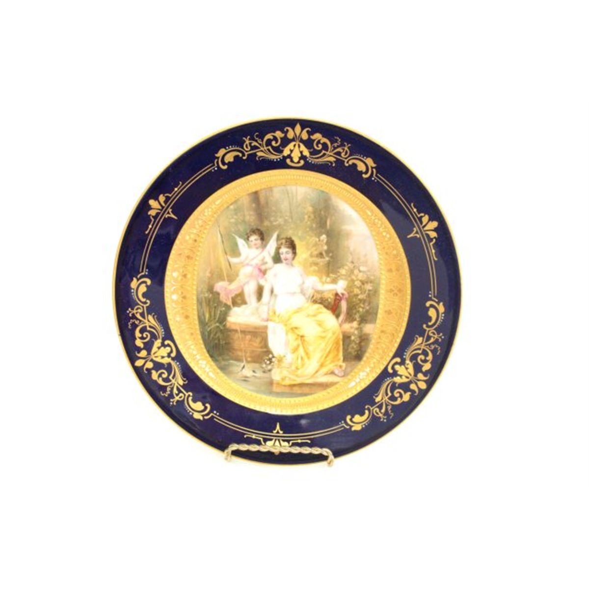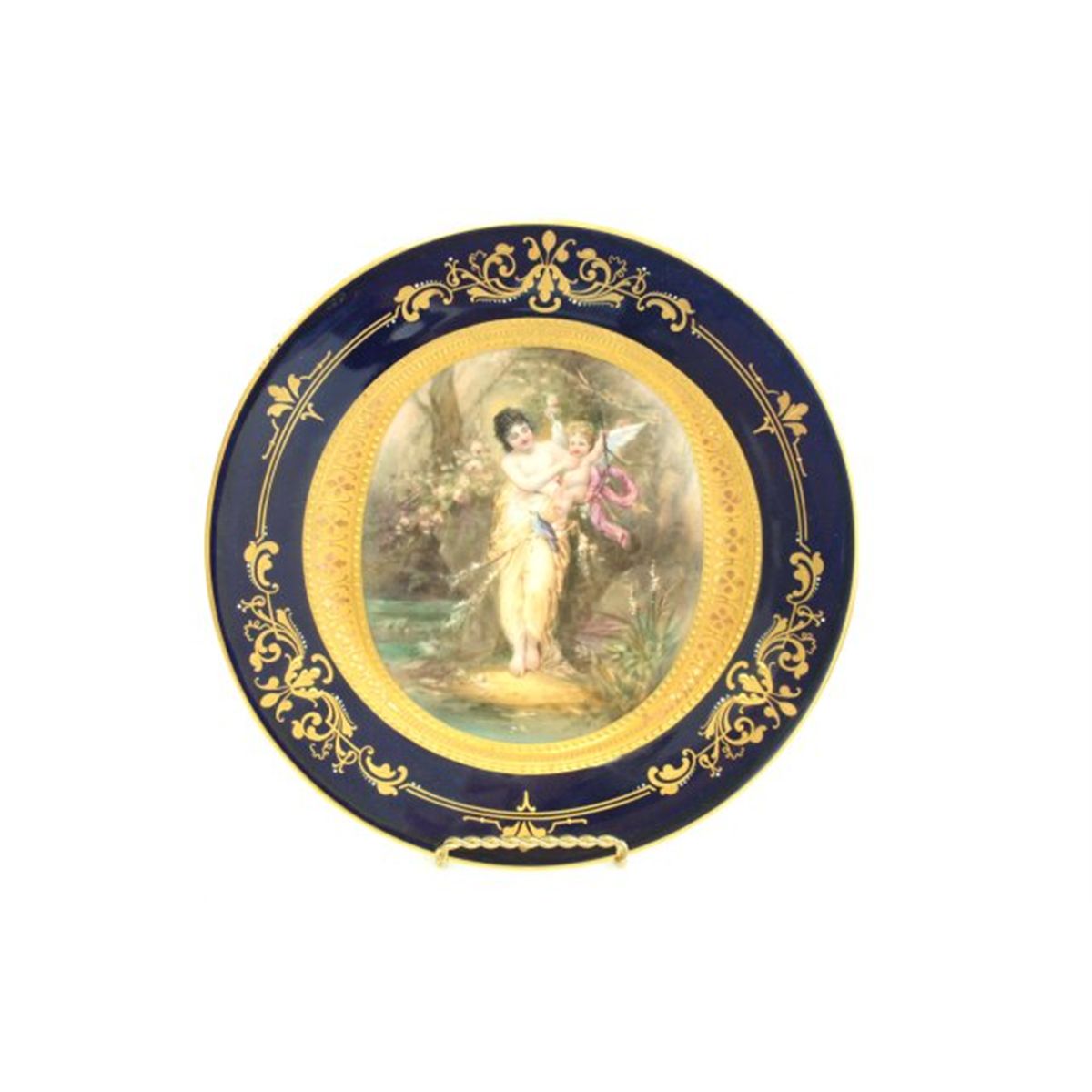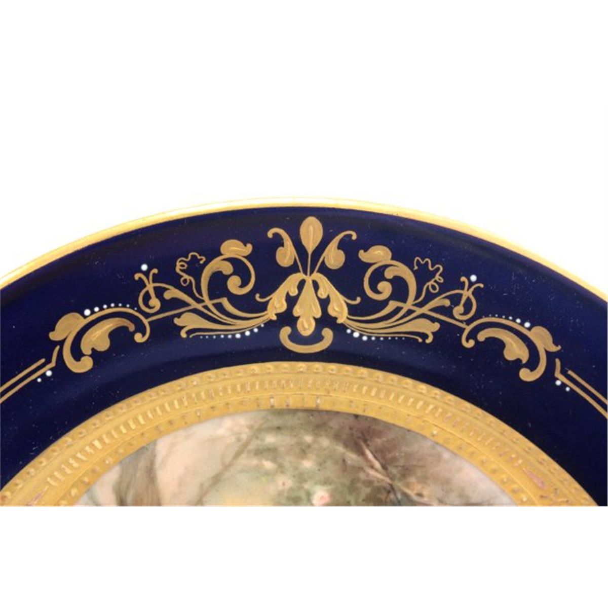 Cobalt rim, hand painted. Approx. 8" Diam. Please read our terms of sale.