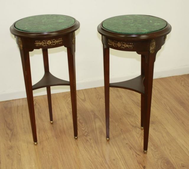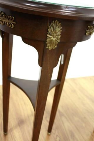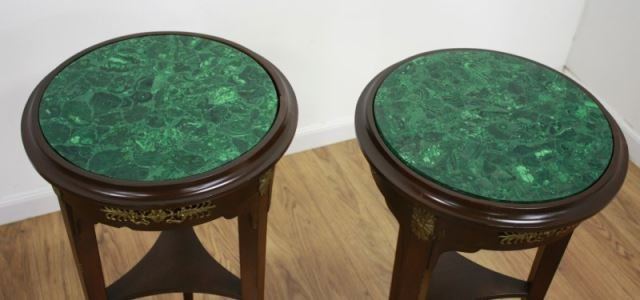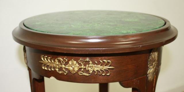 Malachite top, round. Approx. 31 1/2" H x 16" W.