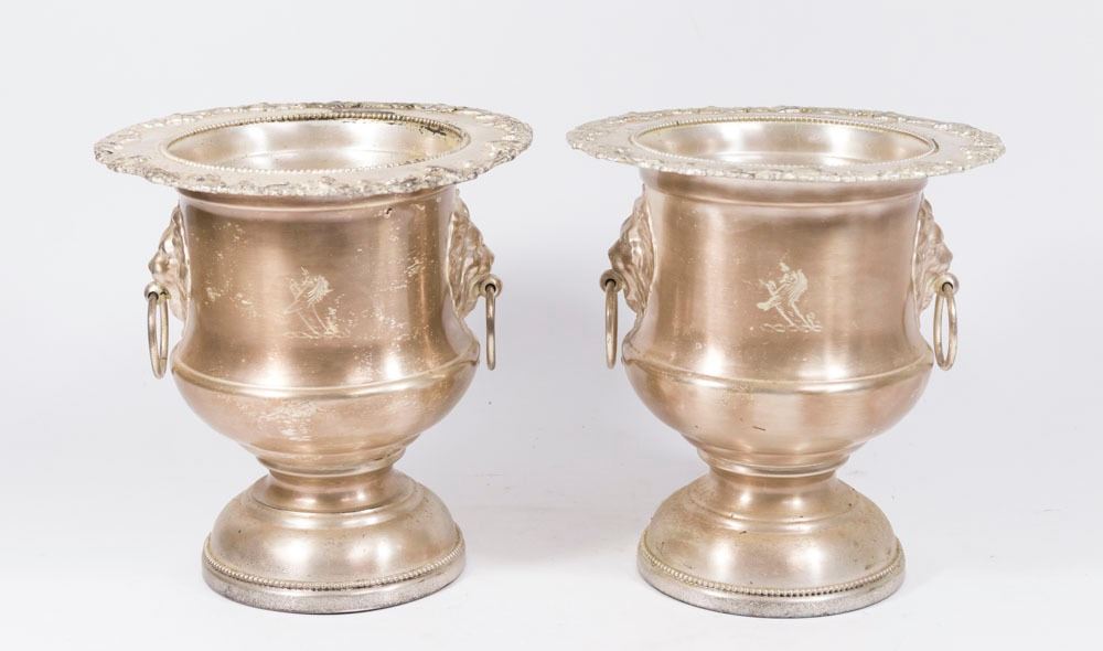 Lion head handles. Floral rim. Approx. 10" H. (6101)