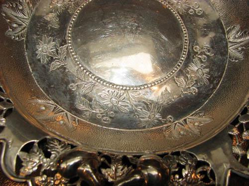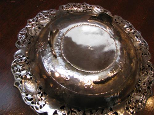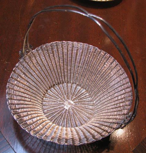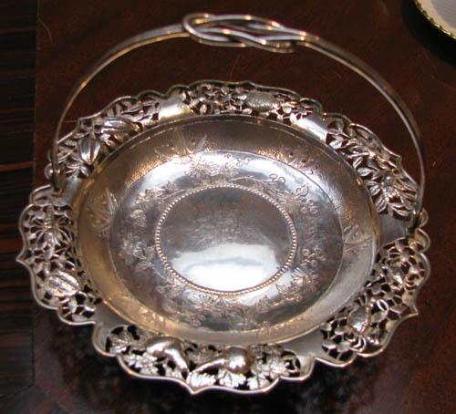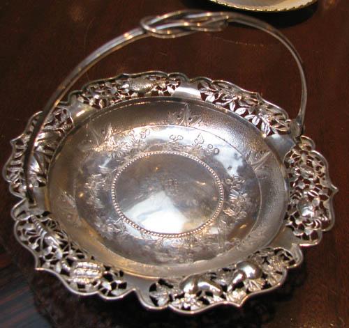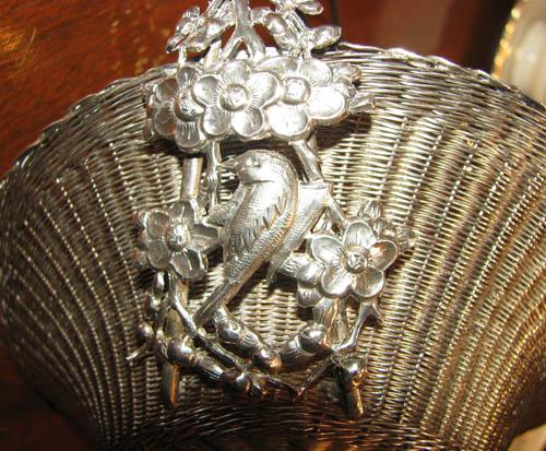 Title: Sing Fat Chinese Export Silver Handled Woven Basket with Cherry Blossom Decoration; Sing Fat Chinese Silver Reticulated Handled Basket with Sea Animals and Plant decorations
