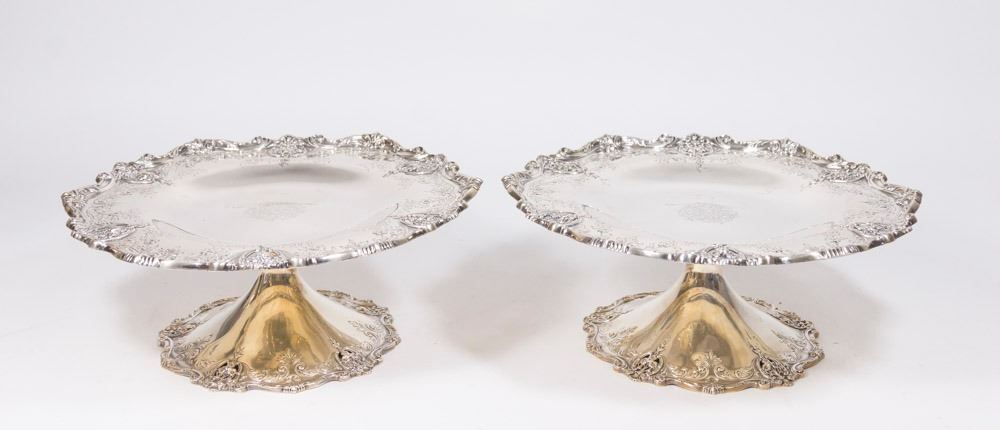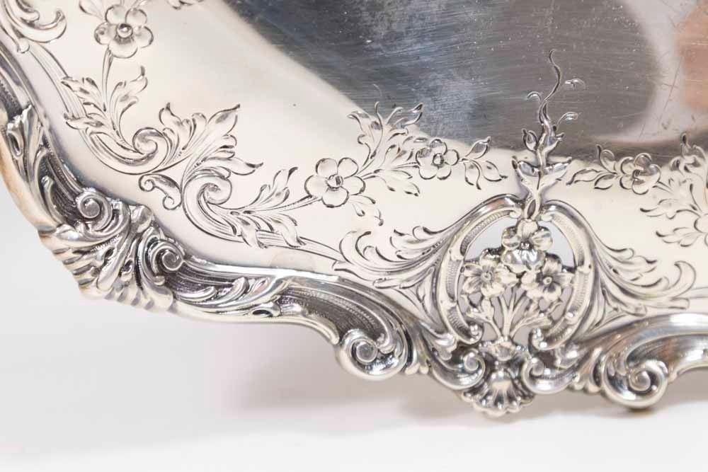 Floral decoration - Graff Washborne Dunn. Approx. 4 1/4" H x 10 1/2" D. Approx. 19.6 ozt and 19.4 ozt.